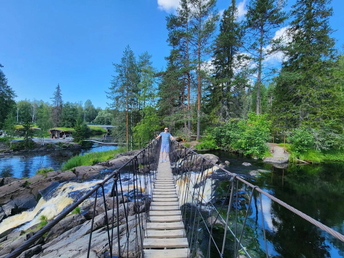 Далее посетим водопады Ахинкоски - место съемок фильмов А зори здесь тихие и Темный мир. Система небольших, бурных водопадов, эко - тропа, подвесные мостики прямо над падением воды и причудливые деревянные скульптуры. Именно здесь можно приобрести карельские ягоды, включая морошку, чаи, полезные травы и многое другое. Обед организуем на форелевой ферме. А завершим день на восхитительной горе - Хийденвуори, с которой открывается невероятный круговой обзор на карельские просторы.