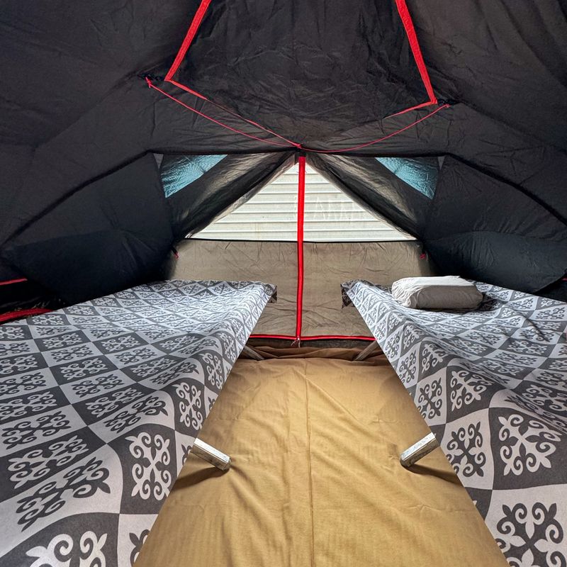 - Био-туалет, штаб-палатка - столовая, винбеги, походные кресла.