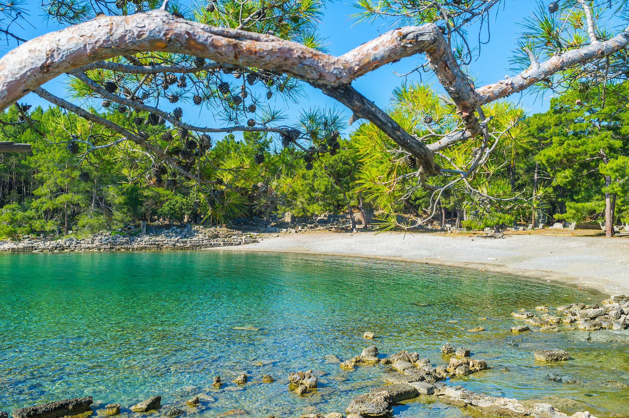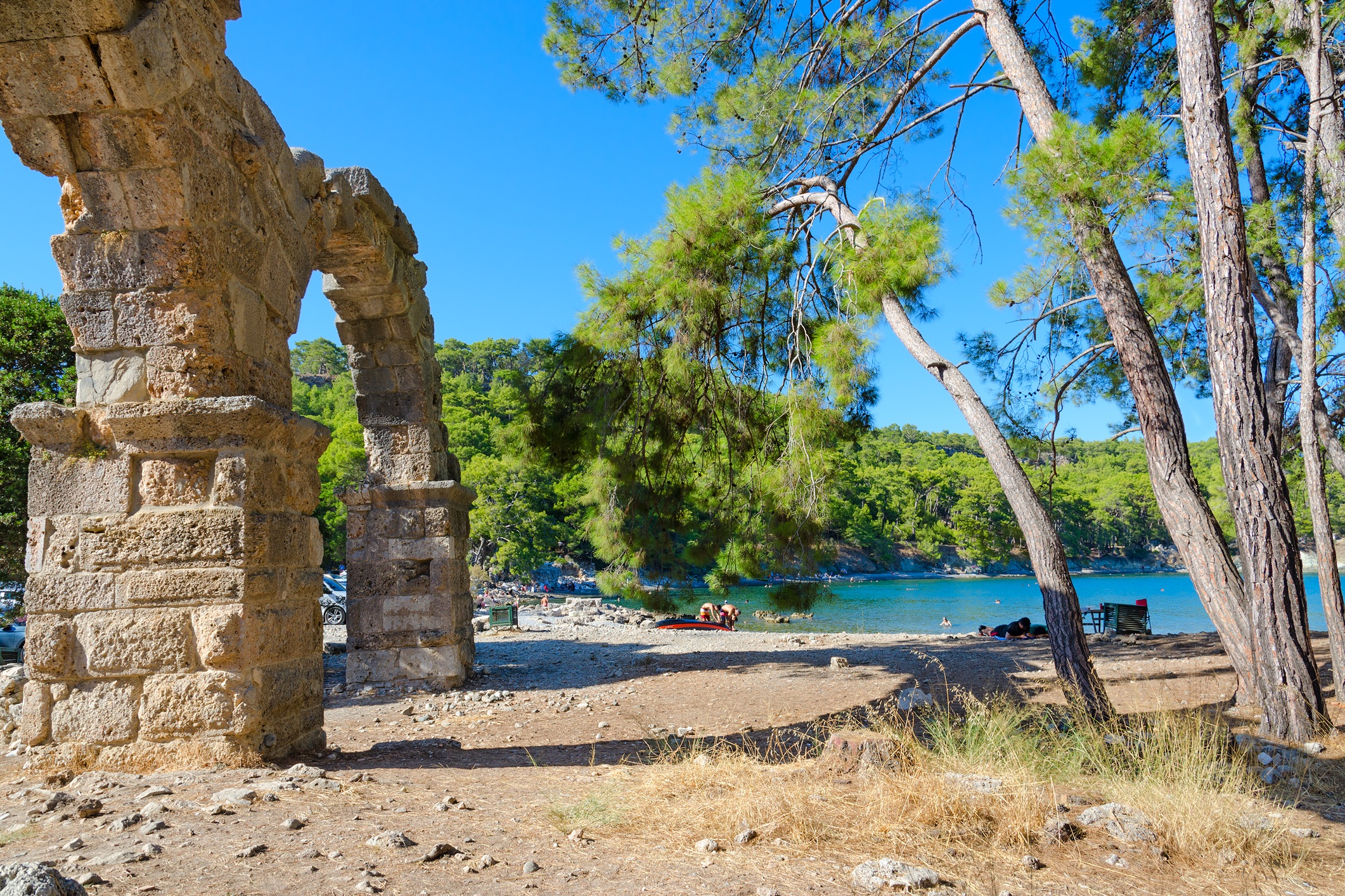 Дальше путь ведёт к бухте Фаселис — месту, где античные руины спускаются к воде, а плаваешь буквально рядом с камнями, помнящими римских императоров. Завершает маршрут живописная бухта для купания — защищённая скалами от ветров, с кристально чистой водой и хвойными лесами по склонам. Это идеальное место, чтобы бросить якорь, сделать запоминающиеся снимки и завершить прогулку на ноте полного умиротворения.