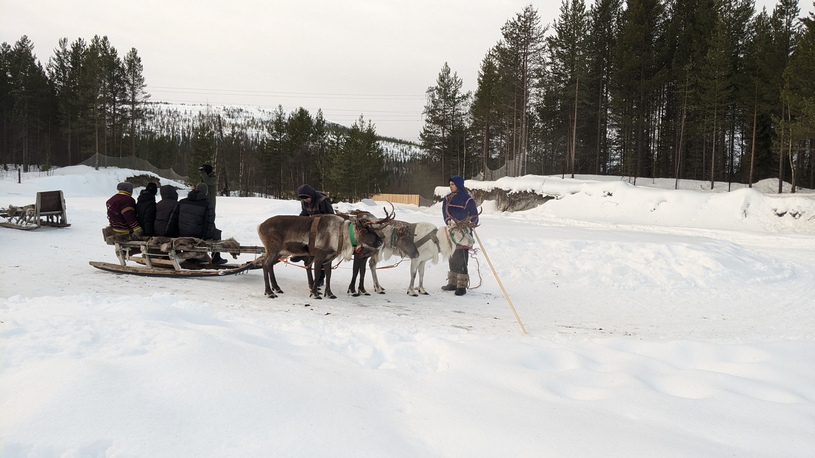 В путешествии на комфортном минивене, в капитанском кресле вы увидите смену географических зон региона, по запросу возможна (остановка на 2,5 часа) развлекательная программа в этнодеревне лопарей (саами) на берегу огромного озера Имандра. Здесь можно покормить оленей и покататься на упряжке с ними, погреться у очага в традиционном саамском жилище.