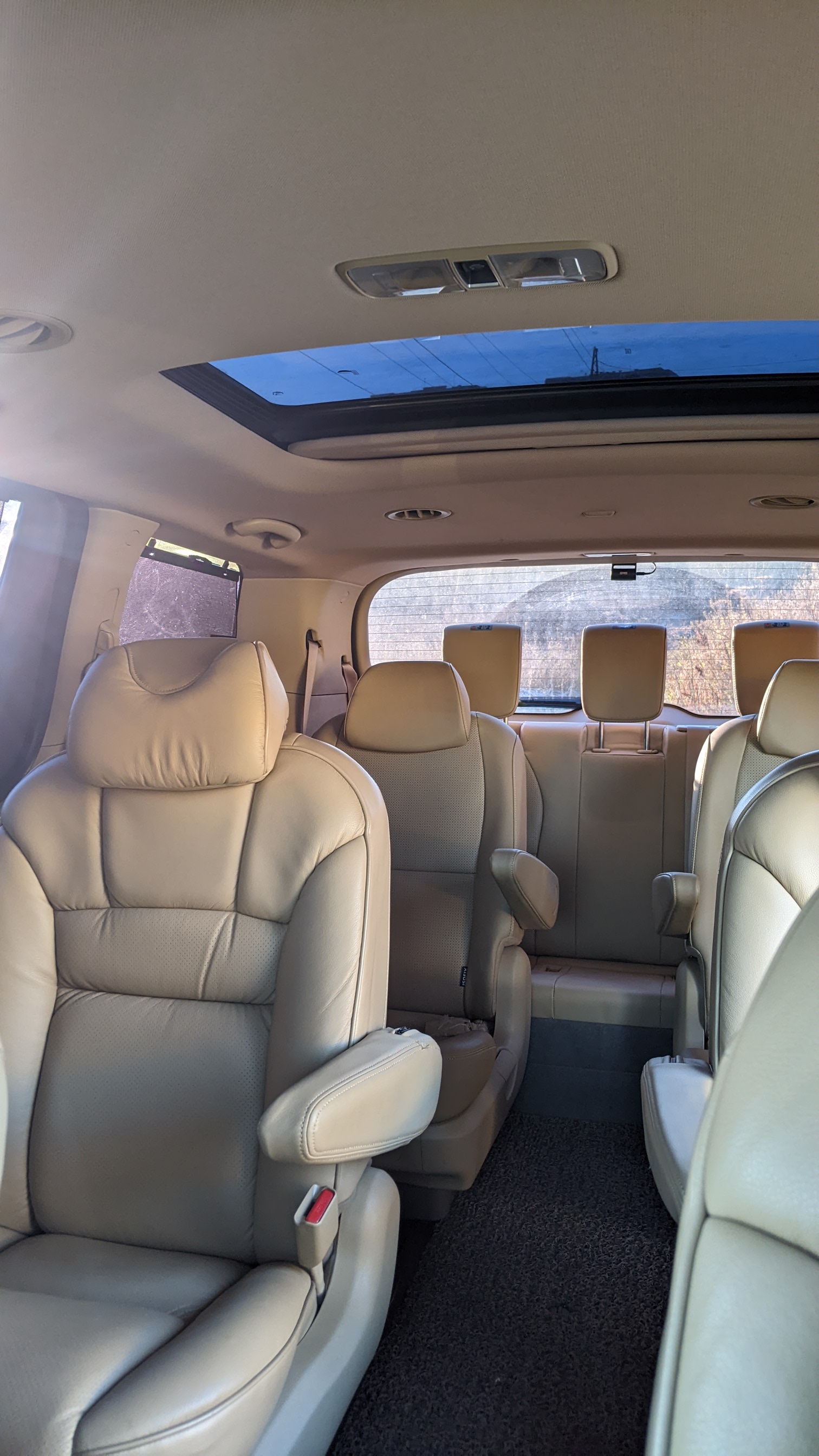 Поездка осуществляется на комфортабельном минивене Kia Carnival c 5 индивидуальными (капитанскими) пассажирскими креслами и отдельным климат-контролем для пассажиров. При необходимости раскладывается дополнительный 4 ряд на 3 детских кресла.
