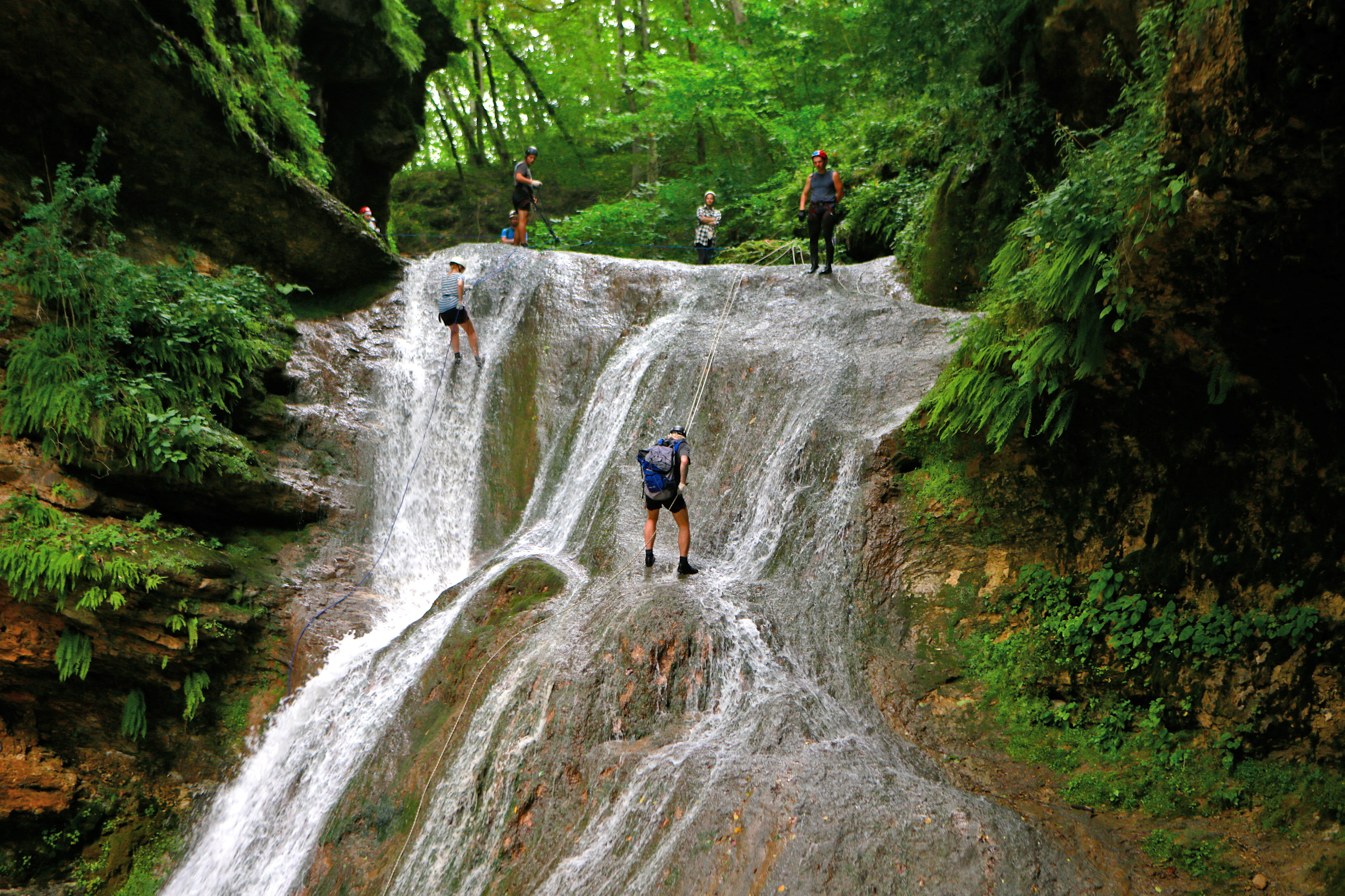 Каньонинг это прежде всего яркие ощущения и новый незабываемый опыт! Это движение по руслу реки в местах с нетронутой реликтовой растительностью и живительным воздухом. Проход по водопадам, падающих с каменных террас, среди крутых склонов тектонического разлома. Верхний Руфабго требует заброску на внедорожнике к местам малопосещаемым и наиболее привлекательным. Проходим водопады с использованием спец. снаряжения и полагаясь на опыт инструкторов. Как обычно, перекус на живописной площадке.