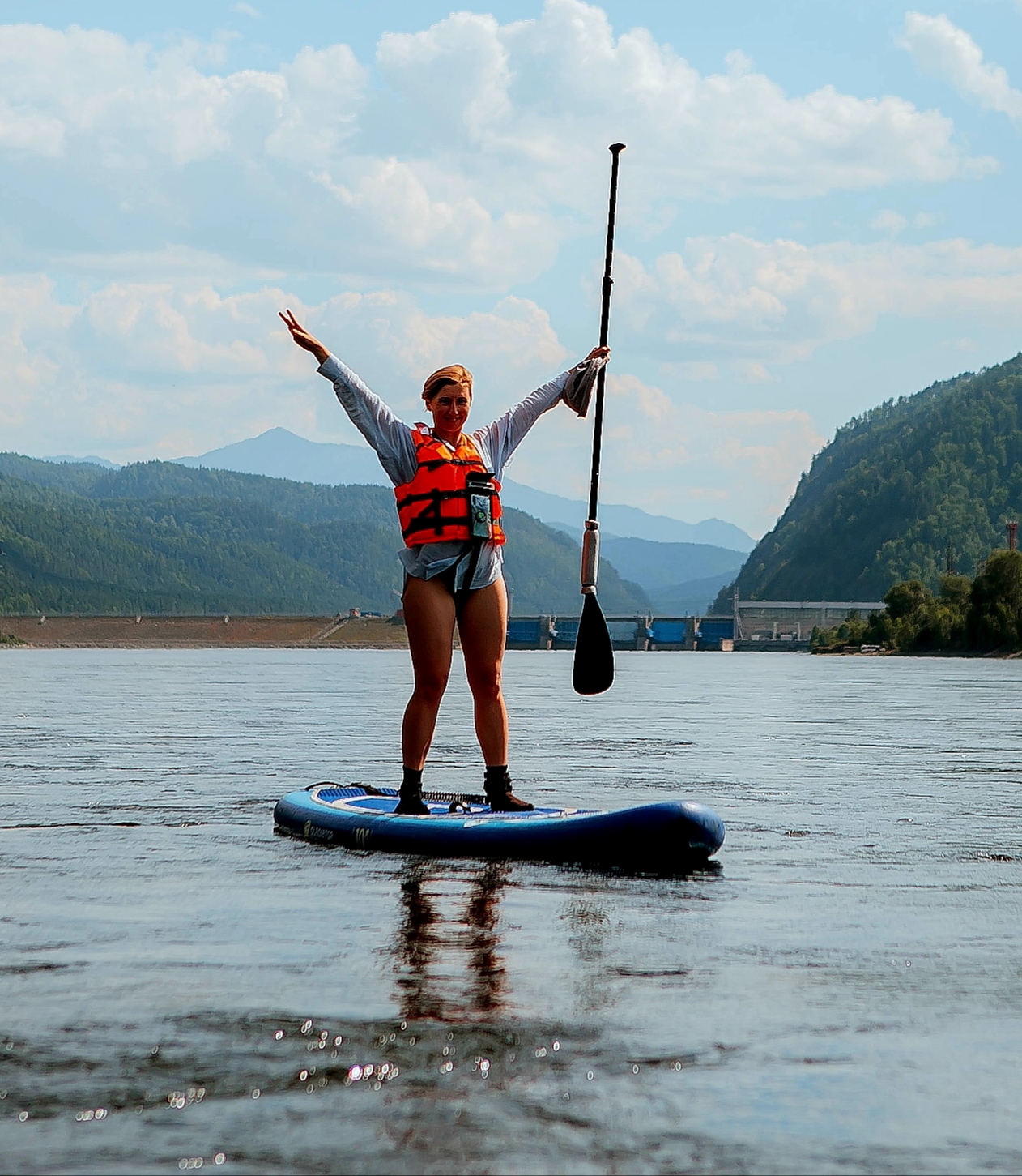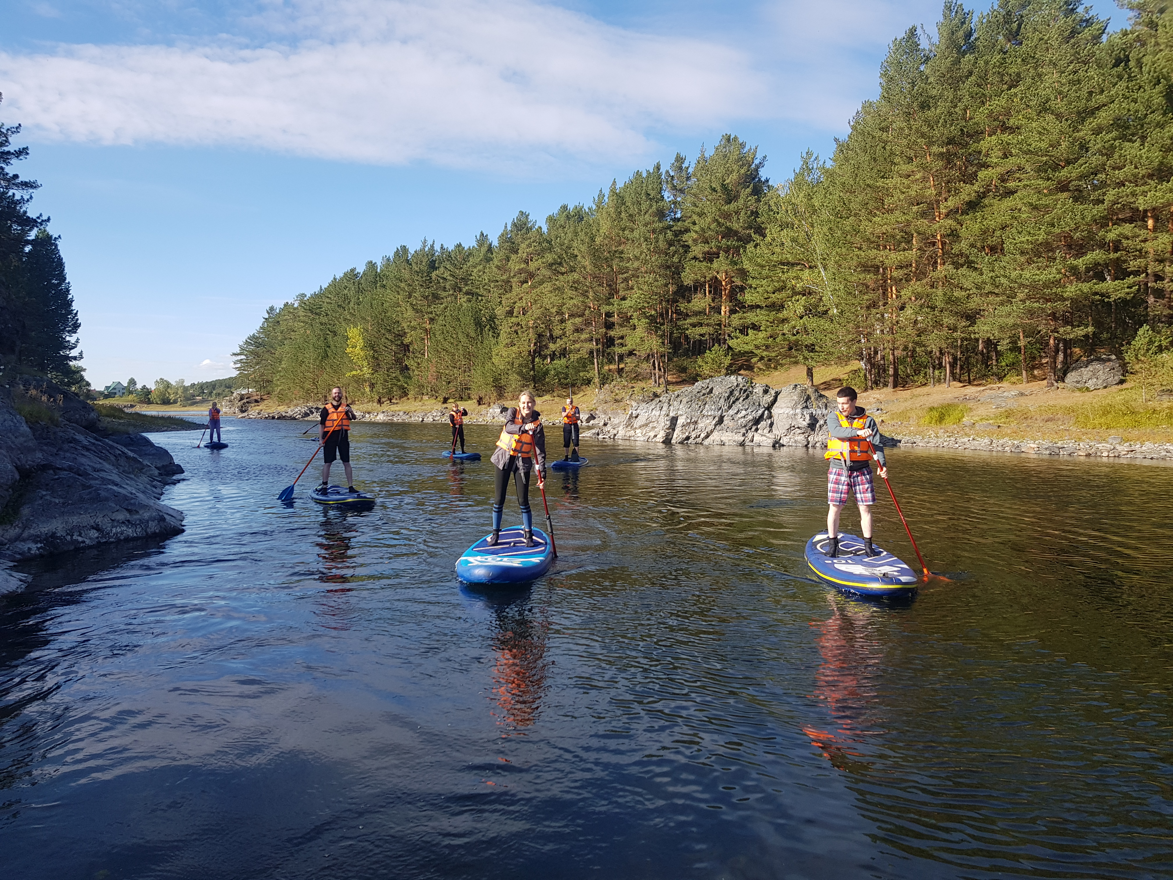 Прогулка на сапах по реке Енисей длиною 15 км.