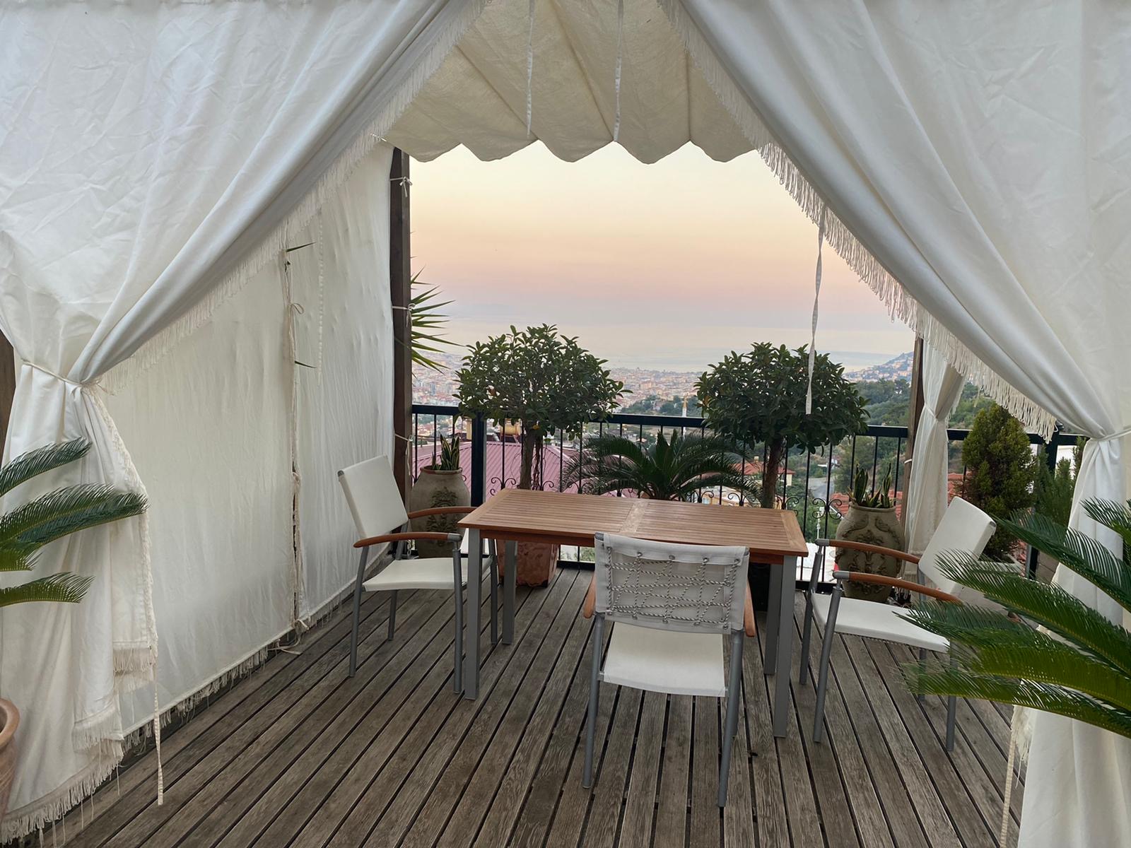 Когда поднимаешься по лестнице, ведущей на верхнюю террасу, понимаешь, зачем надо было подниматься так высоко. Перед тобой открывается панорама, от которой перехватывает дыхание: вся Аланья лежит у твоих ног, как на ладони. Рано утром здесь можно встретить рождение дня — увидеть, как из-за горизонта медленно поднимается солнце, окрашивая Средиземное море в нежно-розовый и золотой. А когда на город опускаются сумерки, пространство преображается: шумная Аланья превращается в бескрайнее море мерцающих огней. Сидя на террасе в этой тишине, ты чувствуешь себя над суетой, над временем, в самом центре этой сияющей красоты, которая принадлежит в этот момент только тебе.
