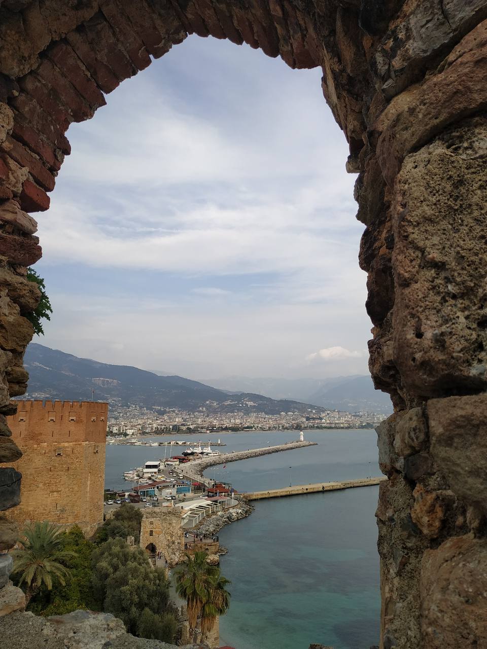 Вернувшись на виллу и немного отдохнув, мы отправились на самую вершину Красной башни, откуда началась Алания. Крепость Эхмедек — сердце города, его история и его главная смотровая площадка. Мы шли вдоль древних стен, вдыхая аромат хвои и нагретого камня. Весь мир лежал у наших ног: порт, бесконечные пляжи и горы Торос, уходящие в дымку. Это было чувство абсолютного полета — после глубины пещер мы вдруг оказались на уровне облаков.