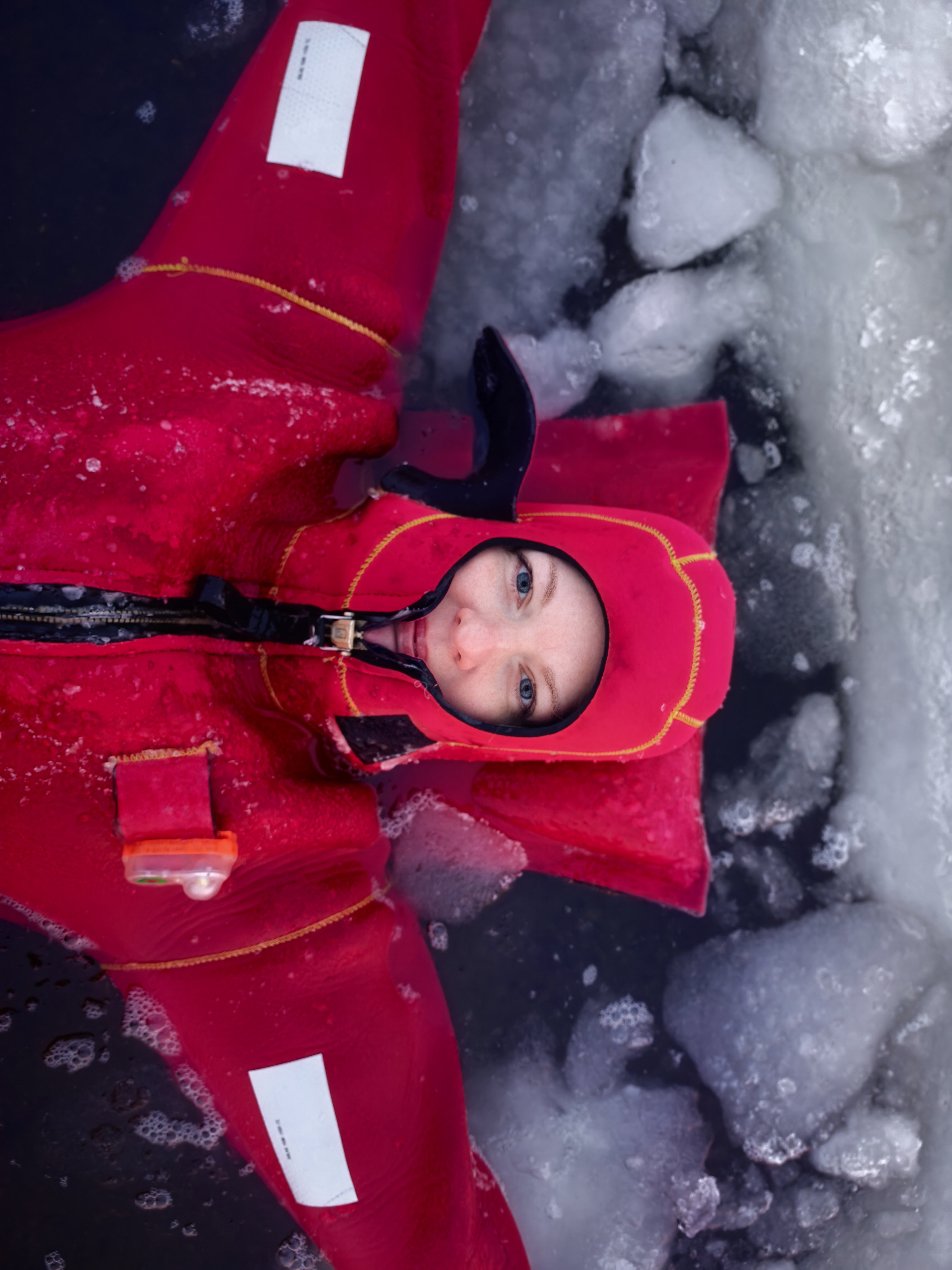 Это невероятная возможность насладиться купанием в ледяной воде, оставаясь при этом в полной безопасности! Купаемся в специальном спасательном костюме, который полностью покрывает тело и обеспечивает надежную защиту от холода.