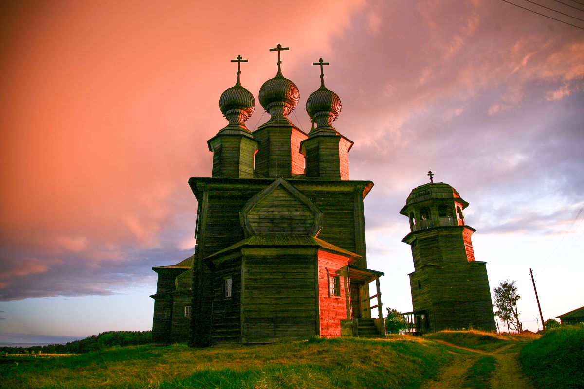 Возвращаемся в порт, обедаем в городском кафе и переправляемся через реку Онегу. Держим путь в старинное поморское село Ворзогоры. Под увлекательный рассказ гида пройдем сельскими тропами к высокому берегу моря, подивимся мудрости, трудолюбию и чувству красоты тех, кто первый стал обживать эту землю. Посетим знаменитый Ворзогорский тройник деревянный храмовый комплекс 17-18 веков постройки, единственный, расположенный у самого моря. С высокой колокольни открываются незабываемые виды здешний ландшафт по праву признан одним из самых красивых на побережье.