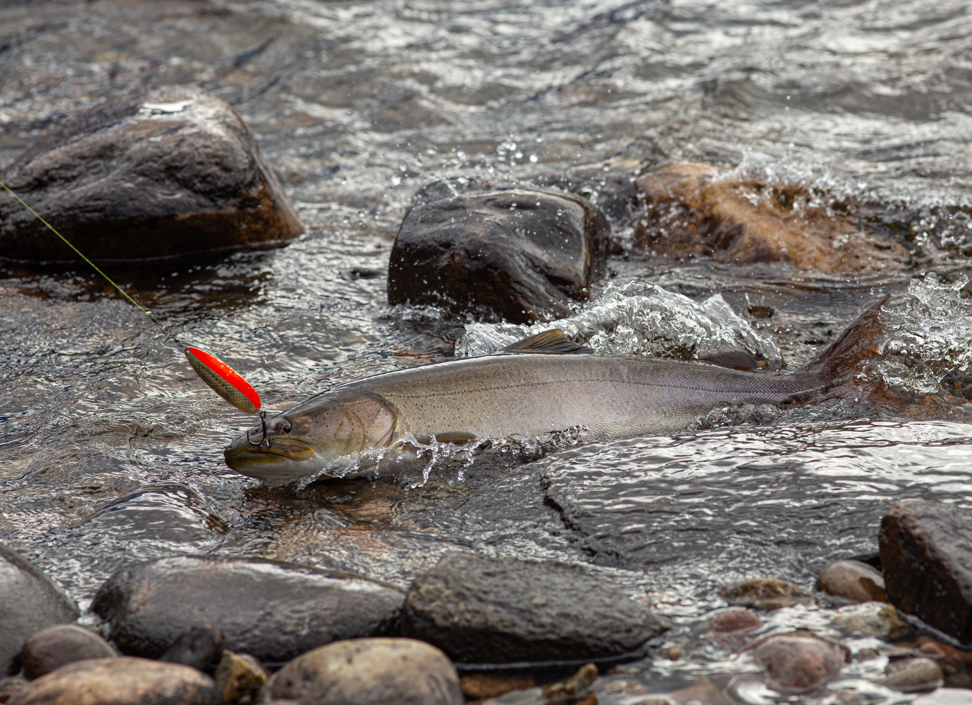 Река Учур также богата тайменем и мы ловим его почти до устья.