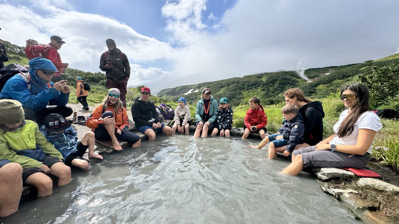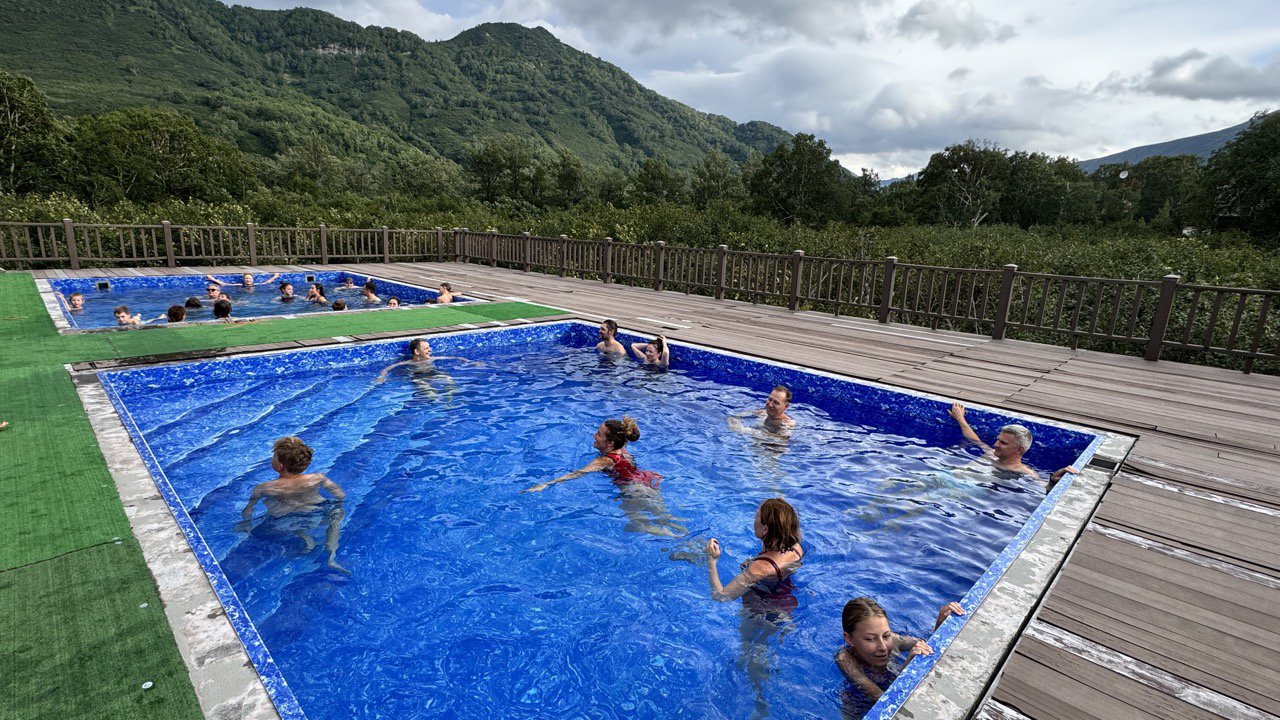 7 активных дней в окружении вулканов в компании семей с детьми! Коттеджи со своей территорией, собственный бассейн на улице с термальной водой. Малая долина гейзеров и водопад Спокойный, дымящие фумаролы, Тихий океан, пляж с вулканическим песком и даже вероятность встретить китов и касаток!