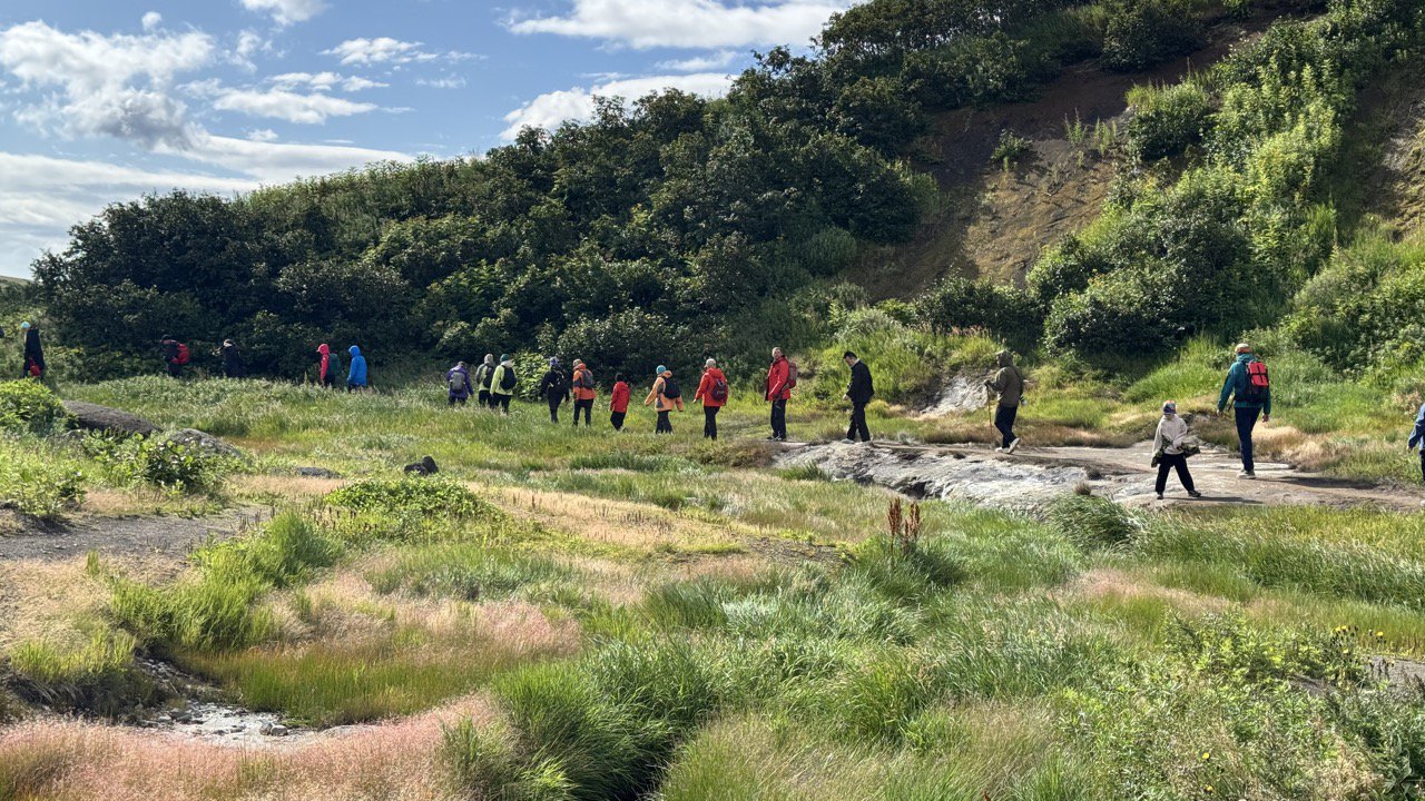 После завтрака загружаемся в транспорт высокой проходимости (вахтовка) и выезжаем на природу. По пути делаем остановку с шикарным видом на Вилючинский вулкан.Через 2 часа пути мы приедем к дымяще - бурлящему плато, увидим выходы газа, бурлящие фумаролы. Маршут около 5 км итого. По времени занимает 3 часа. На нём можно погреться в диких термальных источниках, осторожно потрогать клубы горячего пара и посмотреть как из под земли вырывается кипящая вода! Детям и взрослым будет интересно!Обед на природе с видом на вулкан. Далее нас ждет пешая прогулка к водопаду. Возвращаемся в дом уже к ужину (заказываем заранее у хозяйки за доп.плату). Отдыхаем, купаемся в бассейне, играем в настолки, общаемся, обмениваемся впечатлениями. Ведь ничто так не объединяет, как совместно пройденный маршрут!