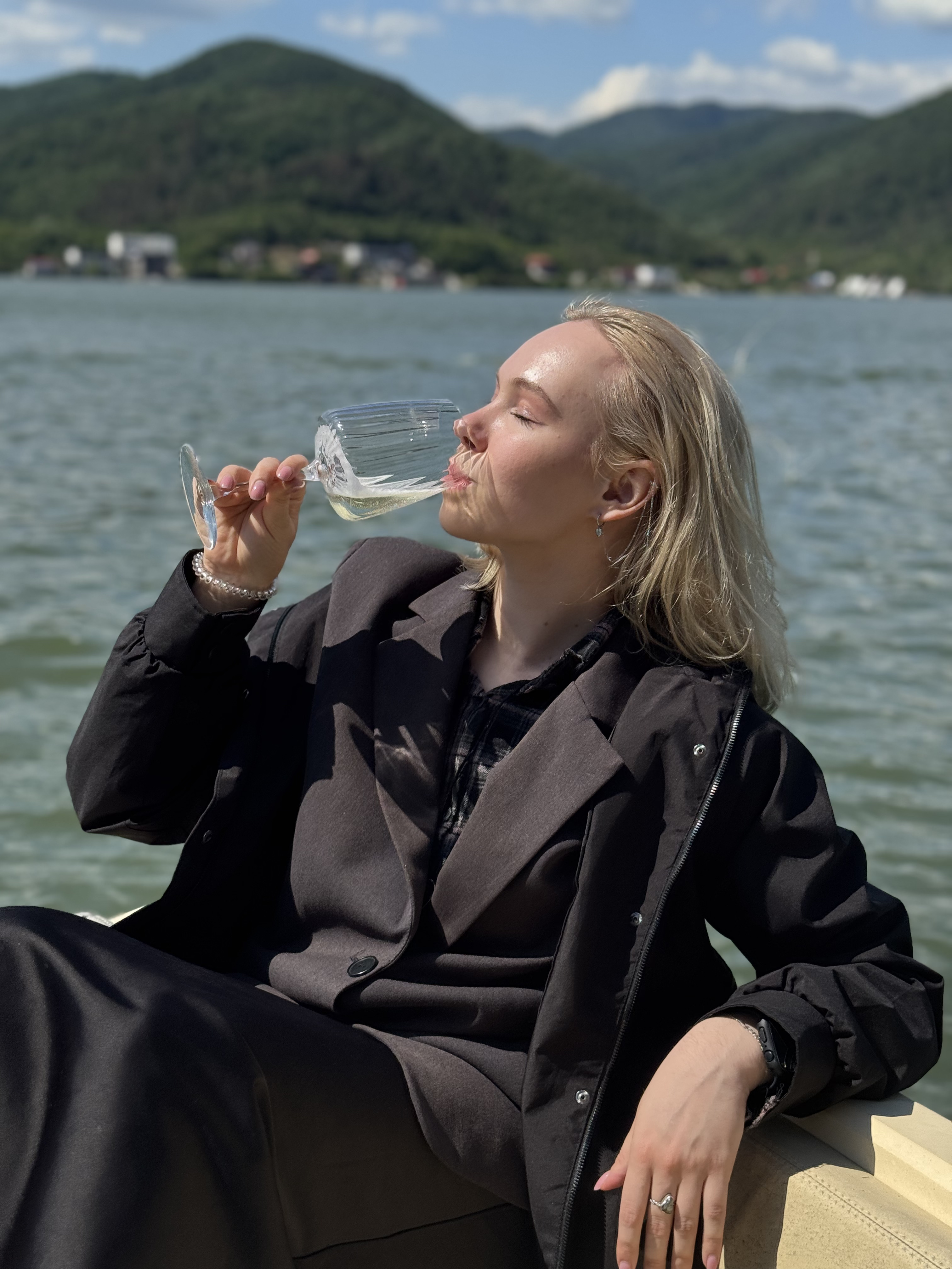 Ближе к вечеру - наша первая винная дегустация. Здесь ты пробуешь игристые и тихие в сочетании с изящными закусками, переосмысляющим традиционные блюда сербской кухни: пряные домашние сыры, соленый пршут и пропитанные южным солнцем оливки.