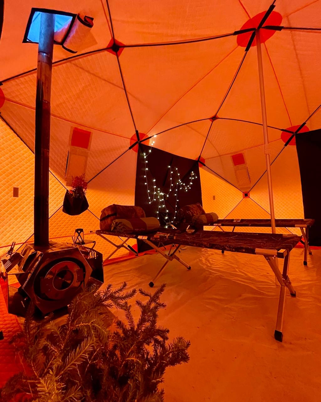 Размещаемся в тёплых и уютных палатках с печным отоплением и удобными кроватями. После дороги — отдых, баня и ужин у костра на берегу озера. При желании — рыбалка или просто время, чтобы переключиться и привыкнуть к месту.