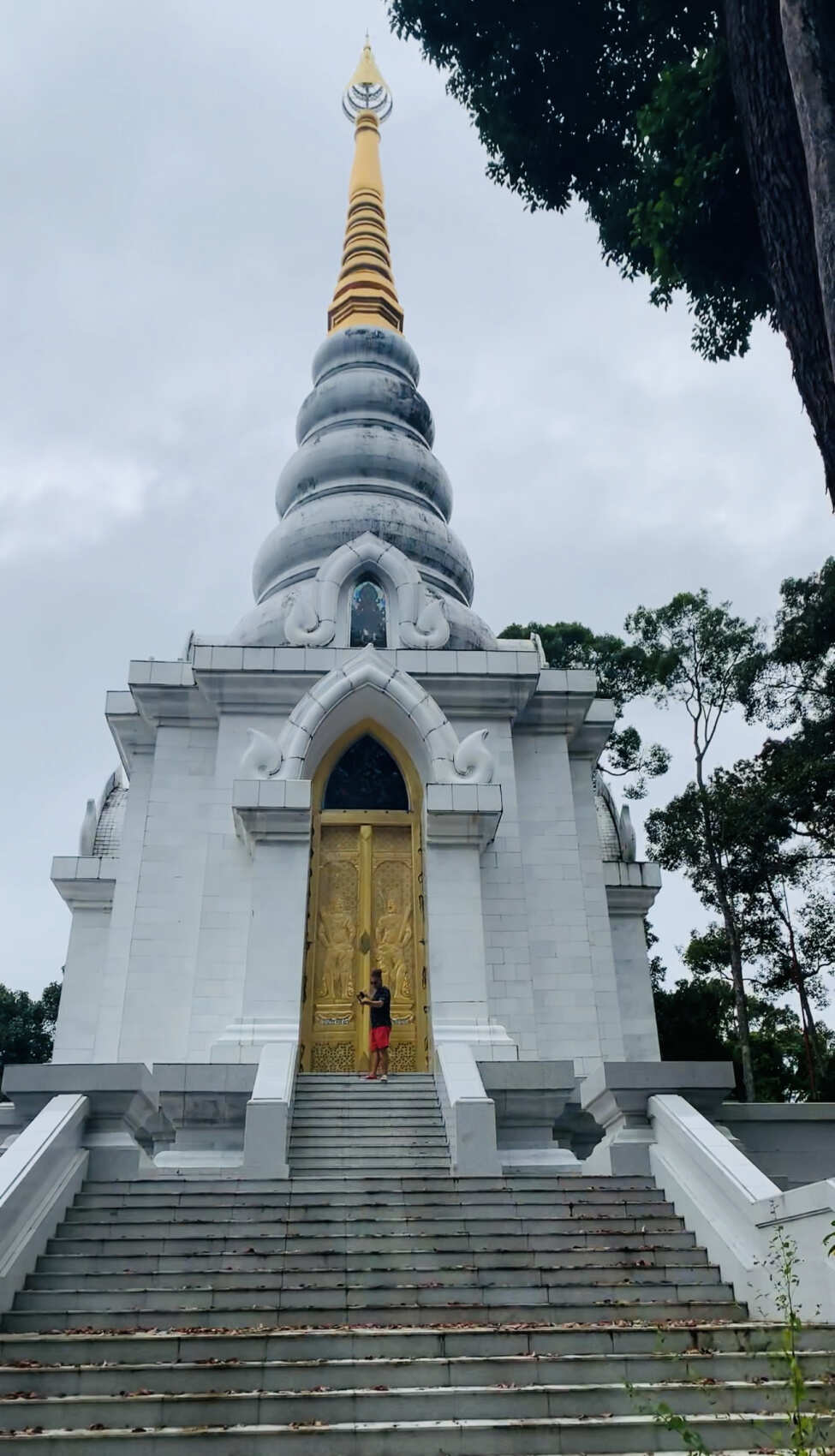 Храм на возвышенности в провинции Пханг Нга. Возле огромных позолоченных дверей взору откроется лежащая внизу долина гор, укутанная ватой облаков