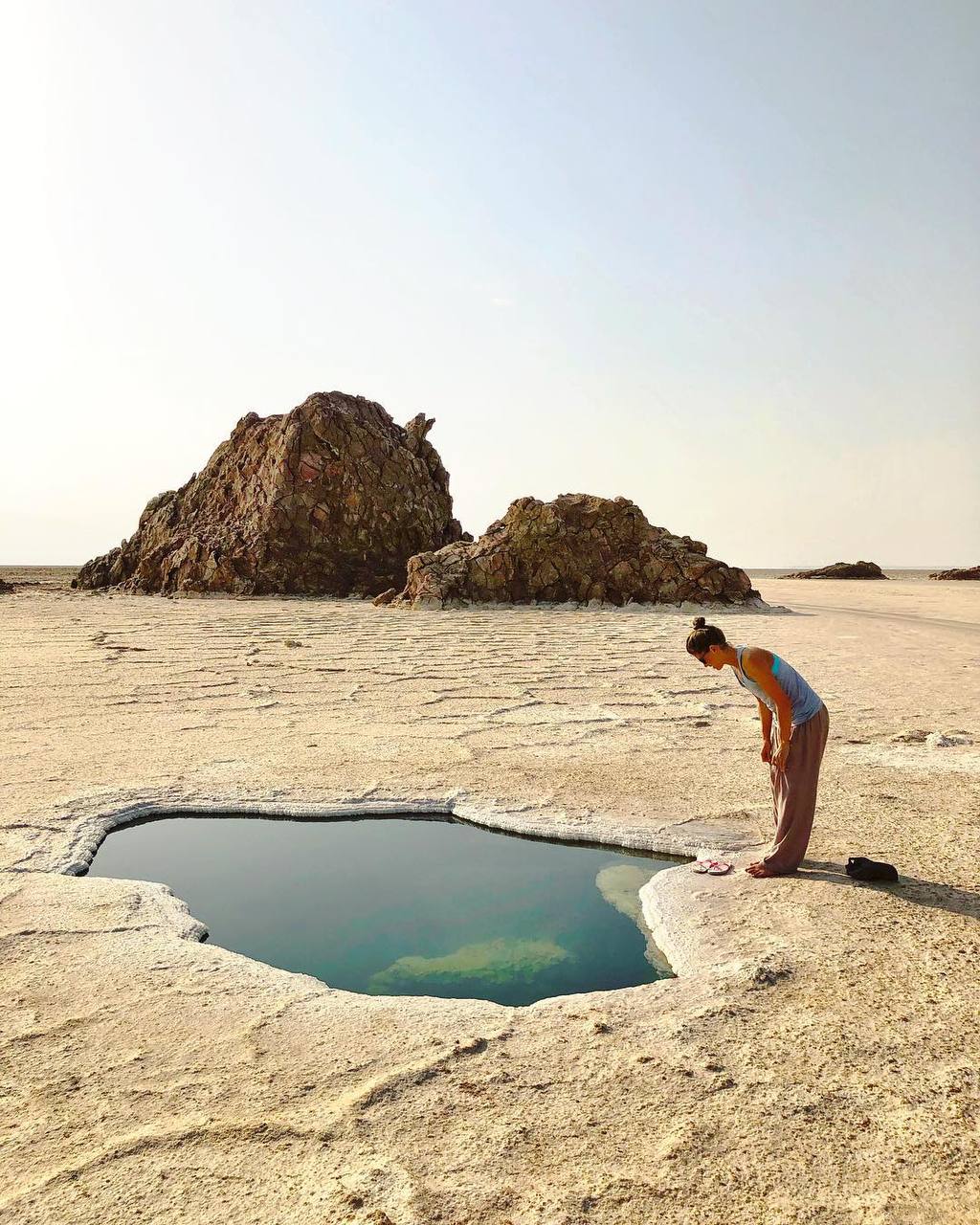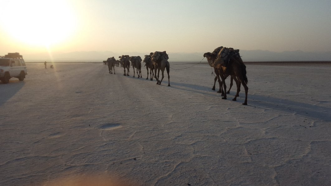 Рассвет вы встретите снова на краю кратера, чтобы увидеть, как первые лучи солнца окрашивают дымящуюся лаву. После завтрака — путь к деревне Хамад-Эла, где вы познакомитесь с бытом народа афар, сумевшего выжить в самом жарком месте планеты. А затем — купание в Солёном озере Асале, лежащем на 120 метров ниже уровня моря. Вода настолько плотная, что удержит вас на поверхности, как в Мёртвом море. Закат здесь окрашивает соляную гладь в розовый.