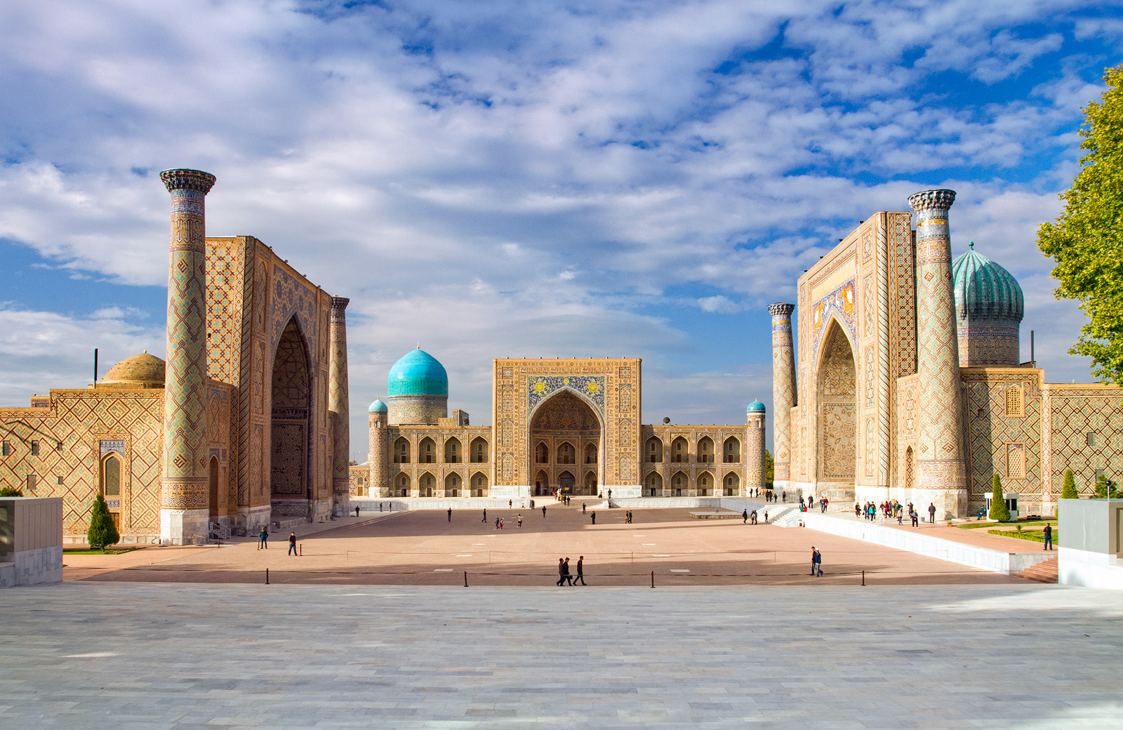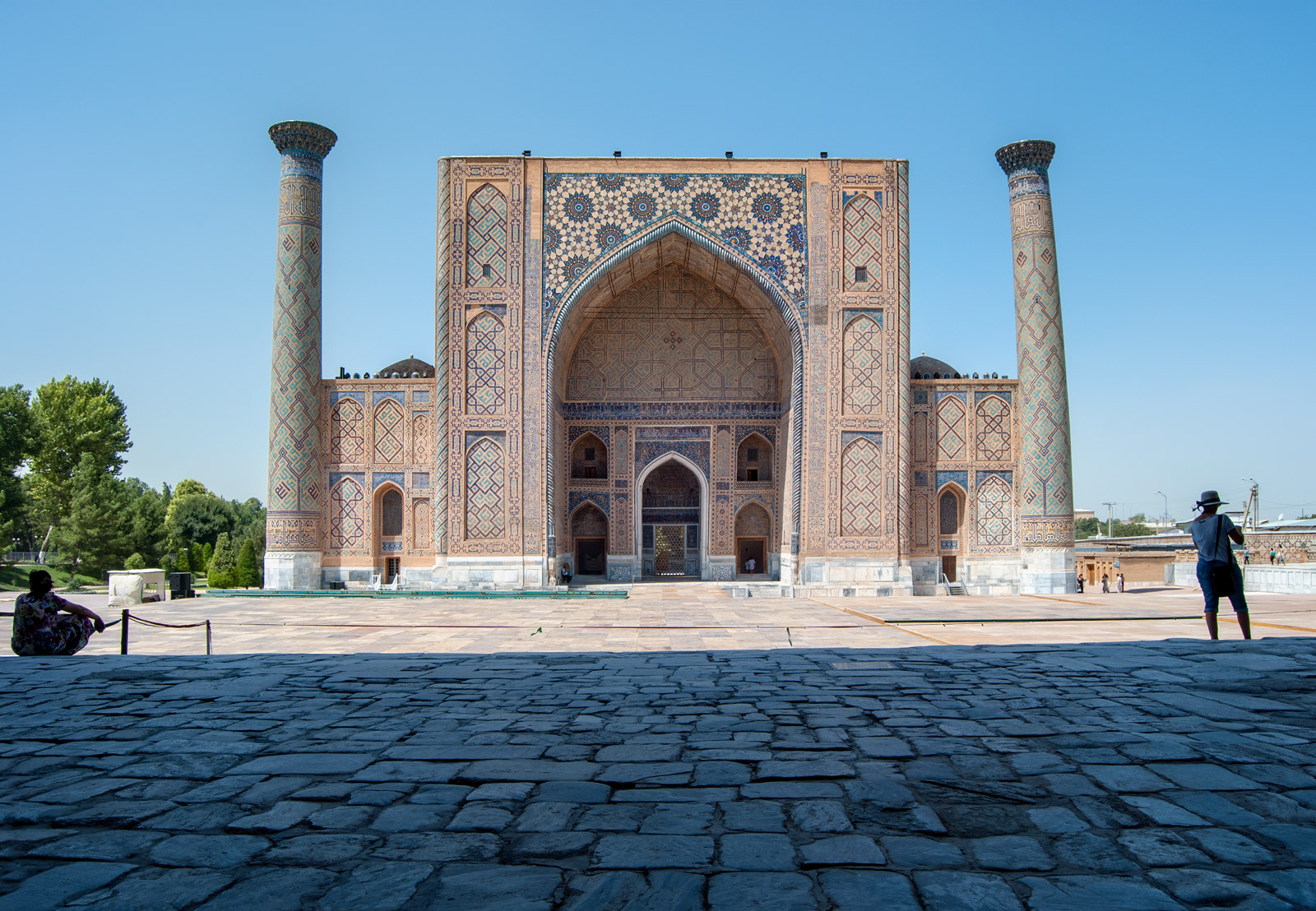 По другую сторону площади стоят два медресе, образующие безмолвный диалог через века.