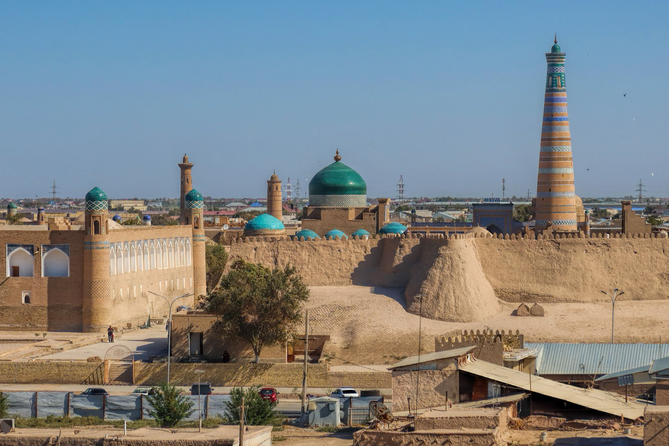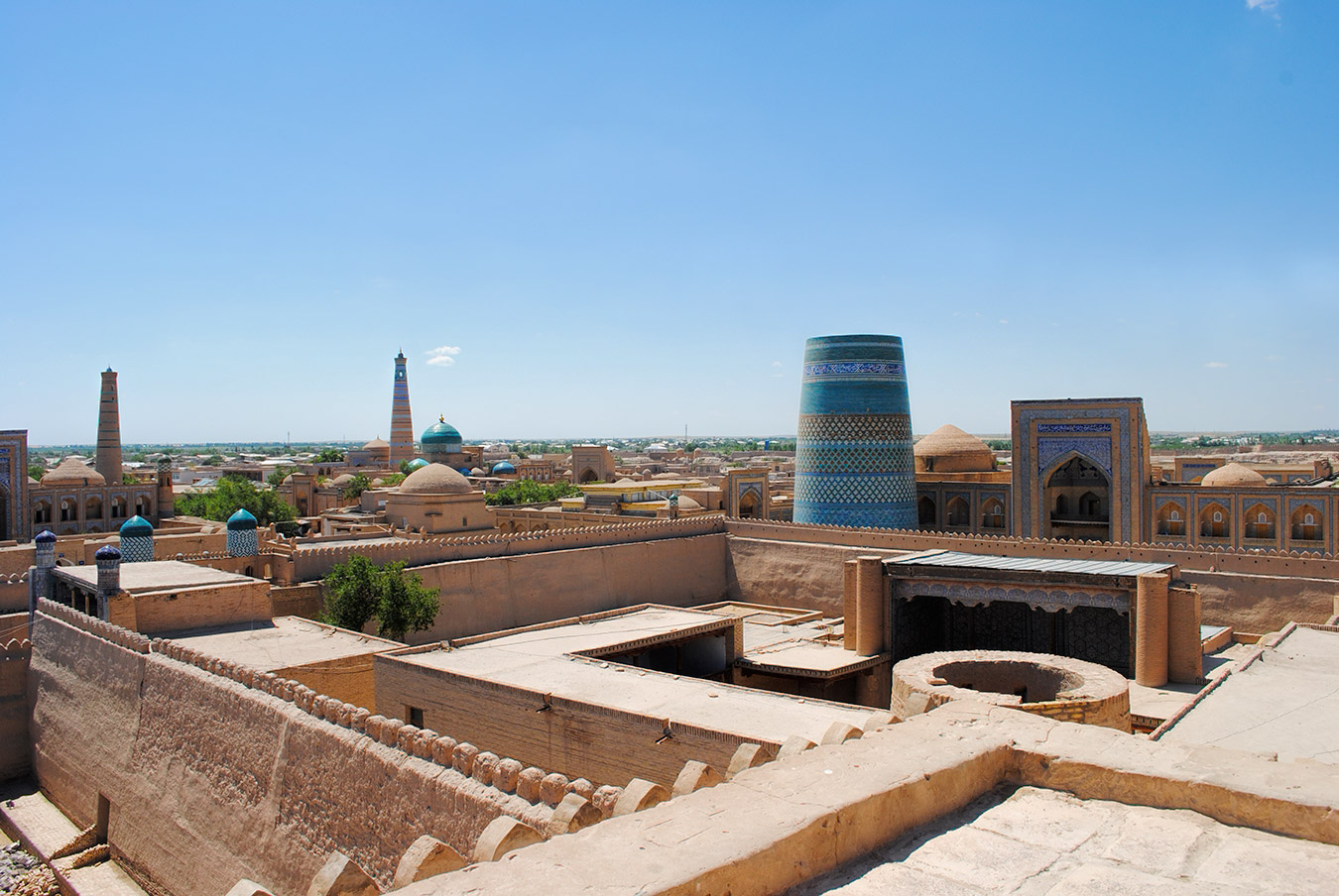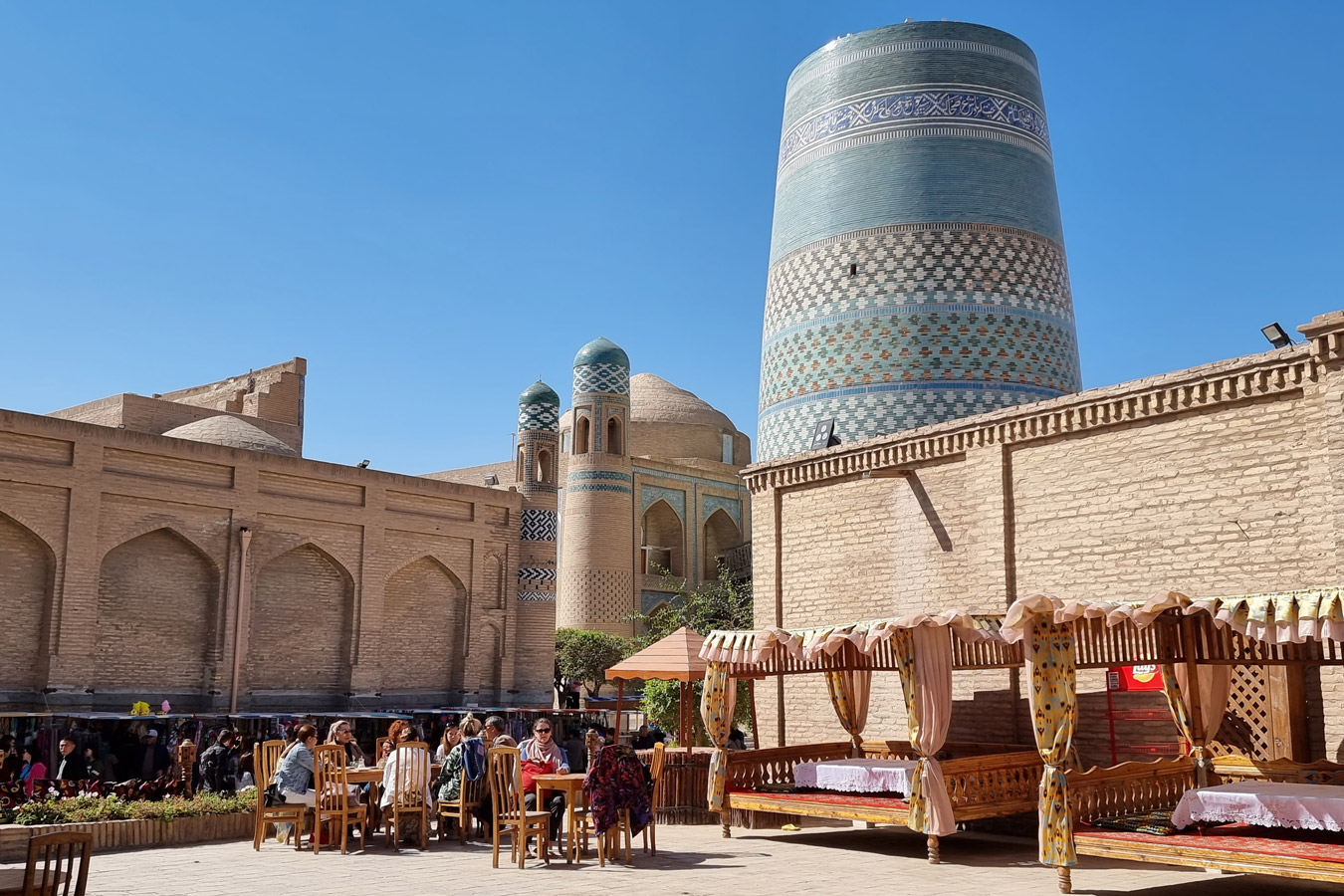 Далее маршрут ведёт в Хиву - сказочный город-оазис, застывший во времени. Сердце Хивы — Ичан-Кала, внутренний город, обнесённый мощными крепостными стенами. Попадая внутрь, словно проваливаешься в прошлое: узкие улочки, минареты, уходящие в небо, лабиринты глиняных стен, бирюза куполов.