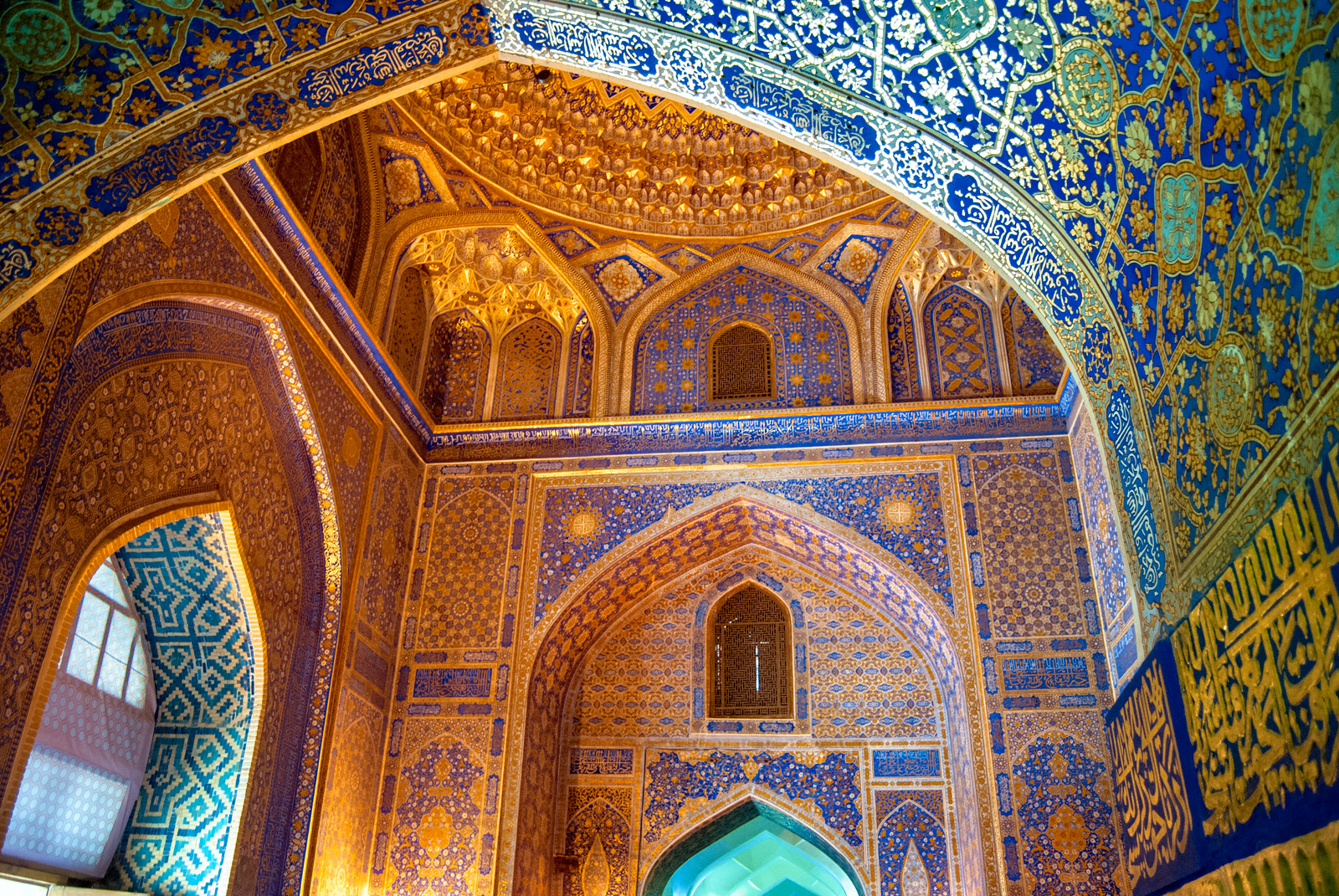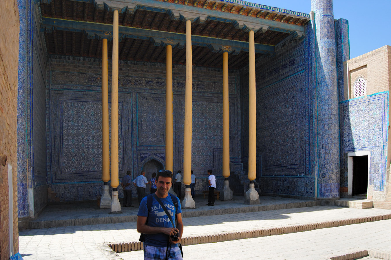 А напротив возвышается медресе Абдулазиз-хана (Xvii век). Оно словно сияет красками и орнаментами! Богатый декор, сложнейшие узоры и изразцы всех оттенков синего и золота создают гимн позднесредневековому мастерству и роскоши. Контраст поражает — и невероятно красив.