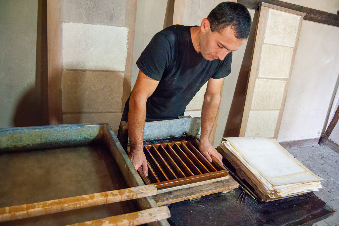 Вы увидите весь процесс: как тутовое дерево превращается в волокно, как варится бумажная масса, как отливаются листы, как сушатся и разглаживаются готовые страницы. Это настоящая магия, рождающаяся из воды, дерева и терпения. Такую бумагу не купишь в обычном магазине — она создаётся здесь, сейчас, на ваших глазах.