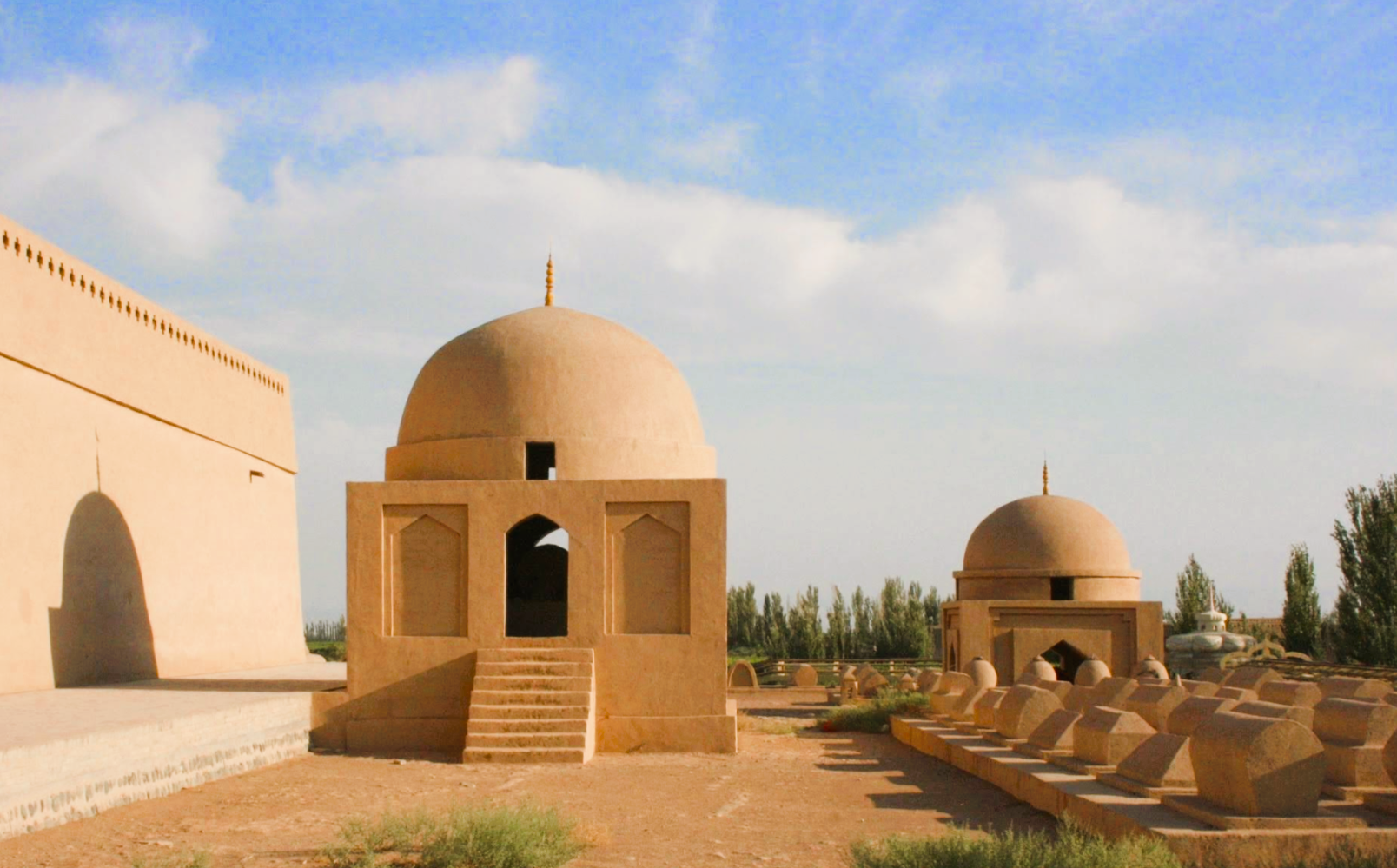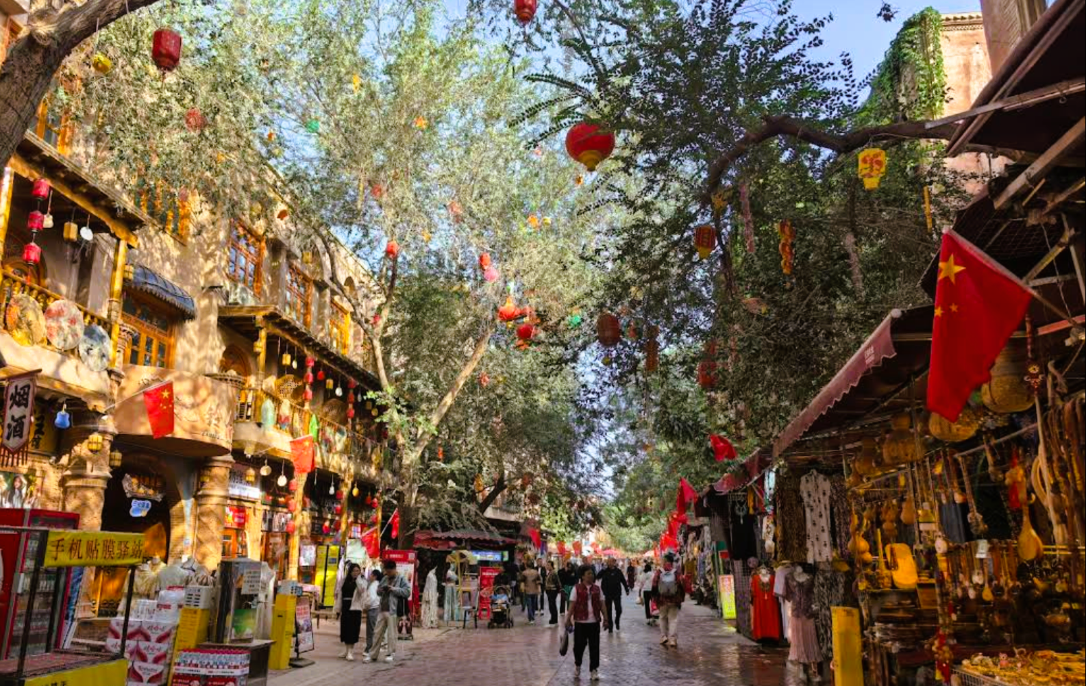 С утра идём в старый город: узкие улочки, глиняные дома, мастерские, где всё ещё делают вещи вручную. Заглядываем в мечеть Ид Ках — одну из крупнейших в Китае.