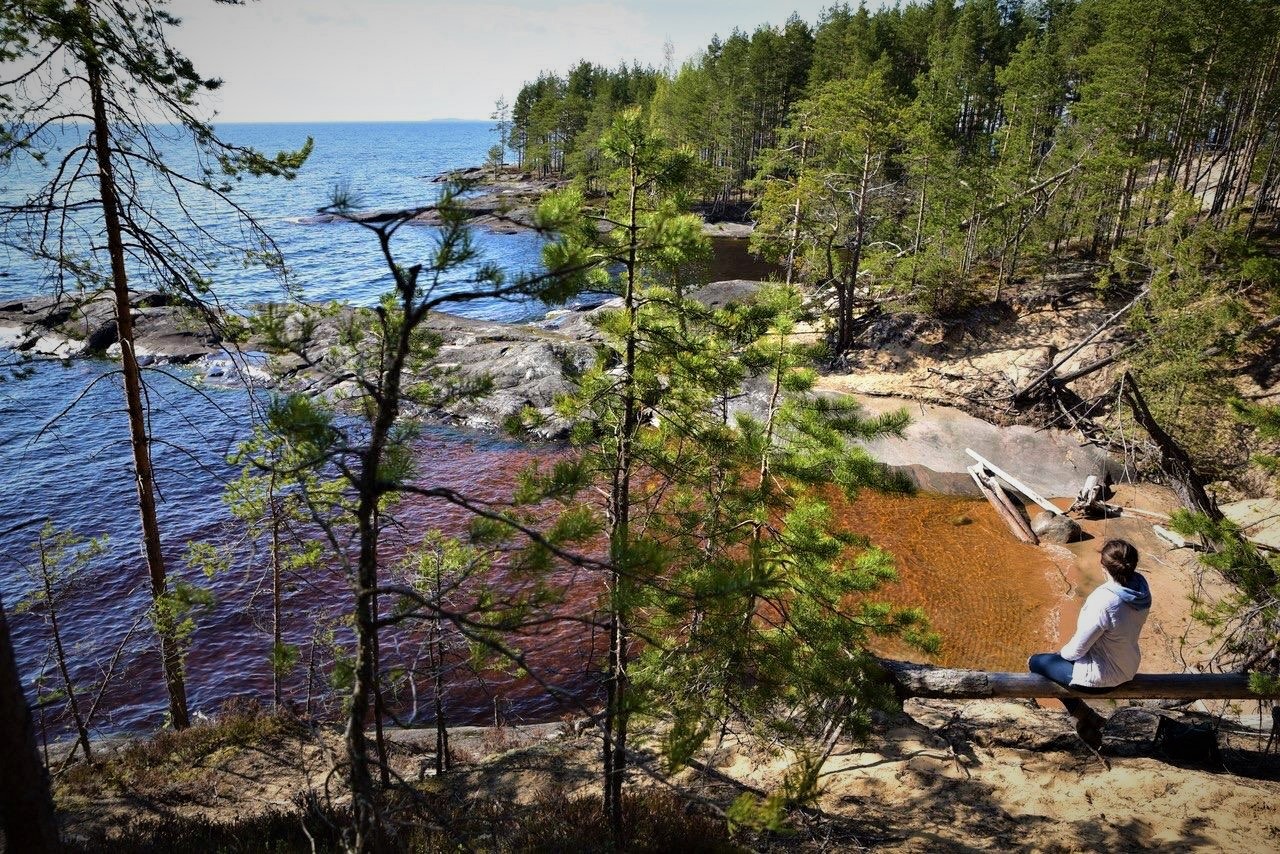 Изюминка тура и один из уникальнейших и нетронутых карельских уголков - Мыс Бесов Нос. Под этим названием скрывается природная композиция из трех мысов: Кладовец, Бесов Нос и Пери Нос - втроем они причудливо изламывают онежский берег. Здесь у воды множество выходов красных и серых гранитов, над ними нависает лес.