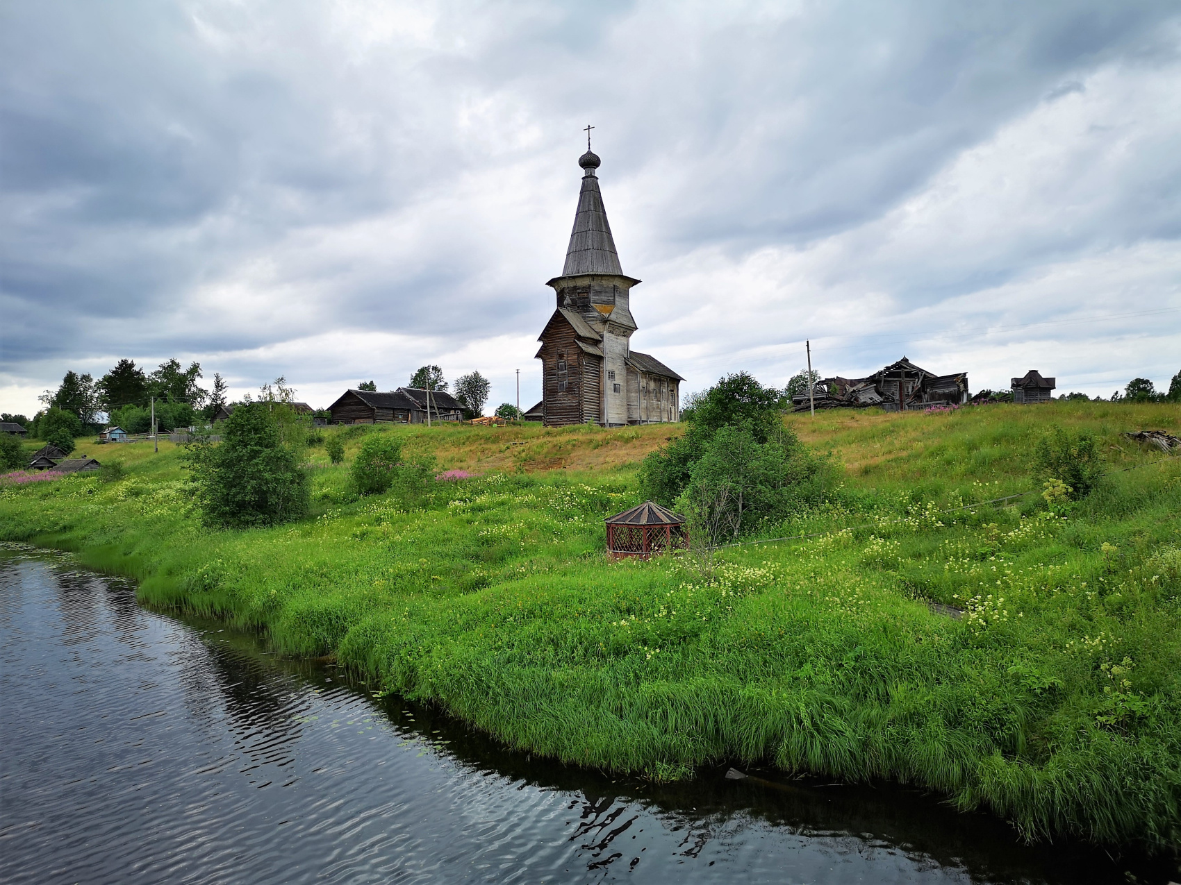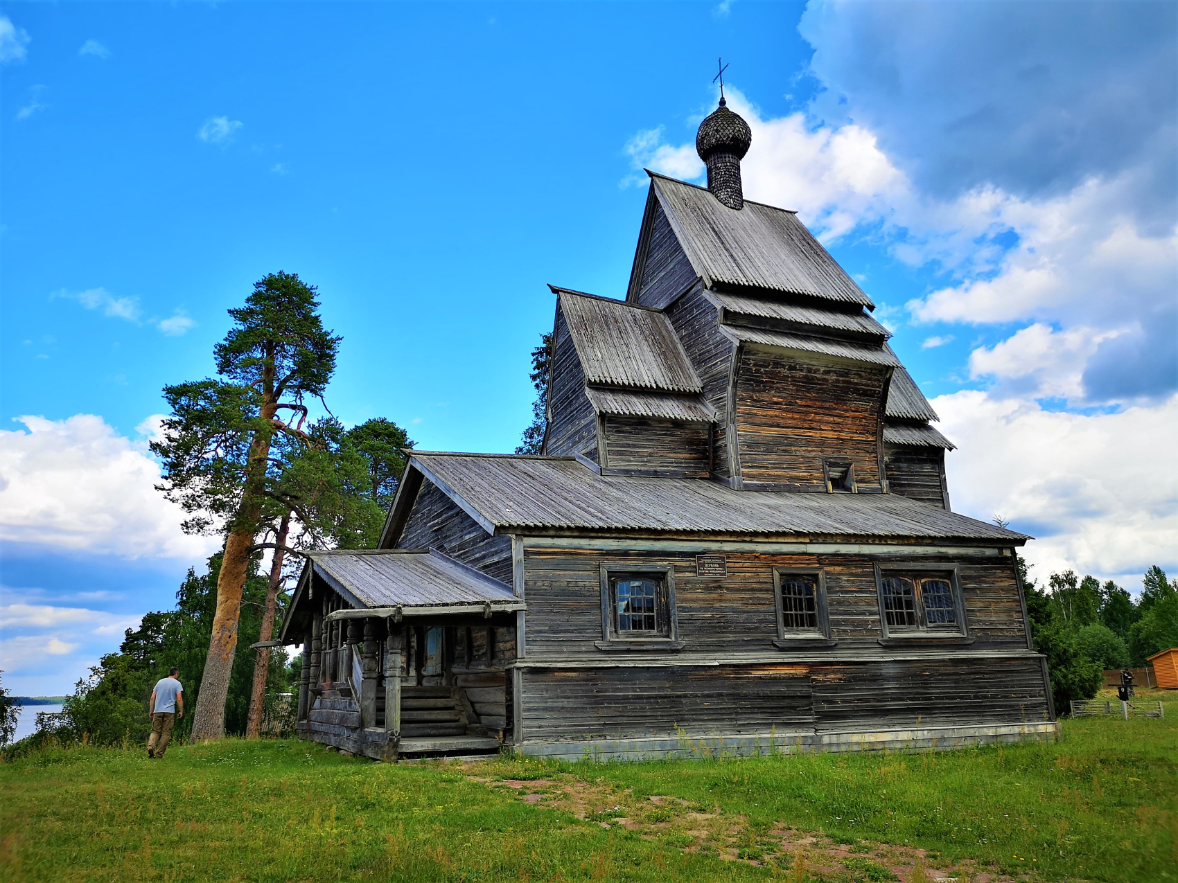 Деревянная церковь Святого Георгия Победоносца в Родионово - это церковь 1493 года постройки, которая является самой старой деревянной церквью, сохранившейся на своем месте и всего третьей по древности сохранившейся деревянной постройкой в России! Расположена она на живописном берегу Юксовского озера. Это место раньше называлось Юксовским погостом, и мы расскажем о нем и о том, что вообще такое погост. Уверены, вы не знаете правильного ответа. В деревне Палтога, на возвышенности и в окружении старых берез, расположены деревянная Богоявленская и каменная Знаменская церкви. Деревянная Богоявленская церковь построена в 1733 г. и относится к типу поонежских храмов с ярусным многоглавым завершением. Самые грандиозные сооружения этой группы — Преображенская церковь в Кижах и Покровская церковь в Анхимове под Вытегрой (сгорела в результате поджога в 1960-е, копия ее выстроена недавно на окраине Петербурга - усадьба Богоявленка).