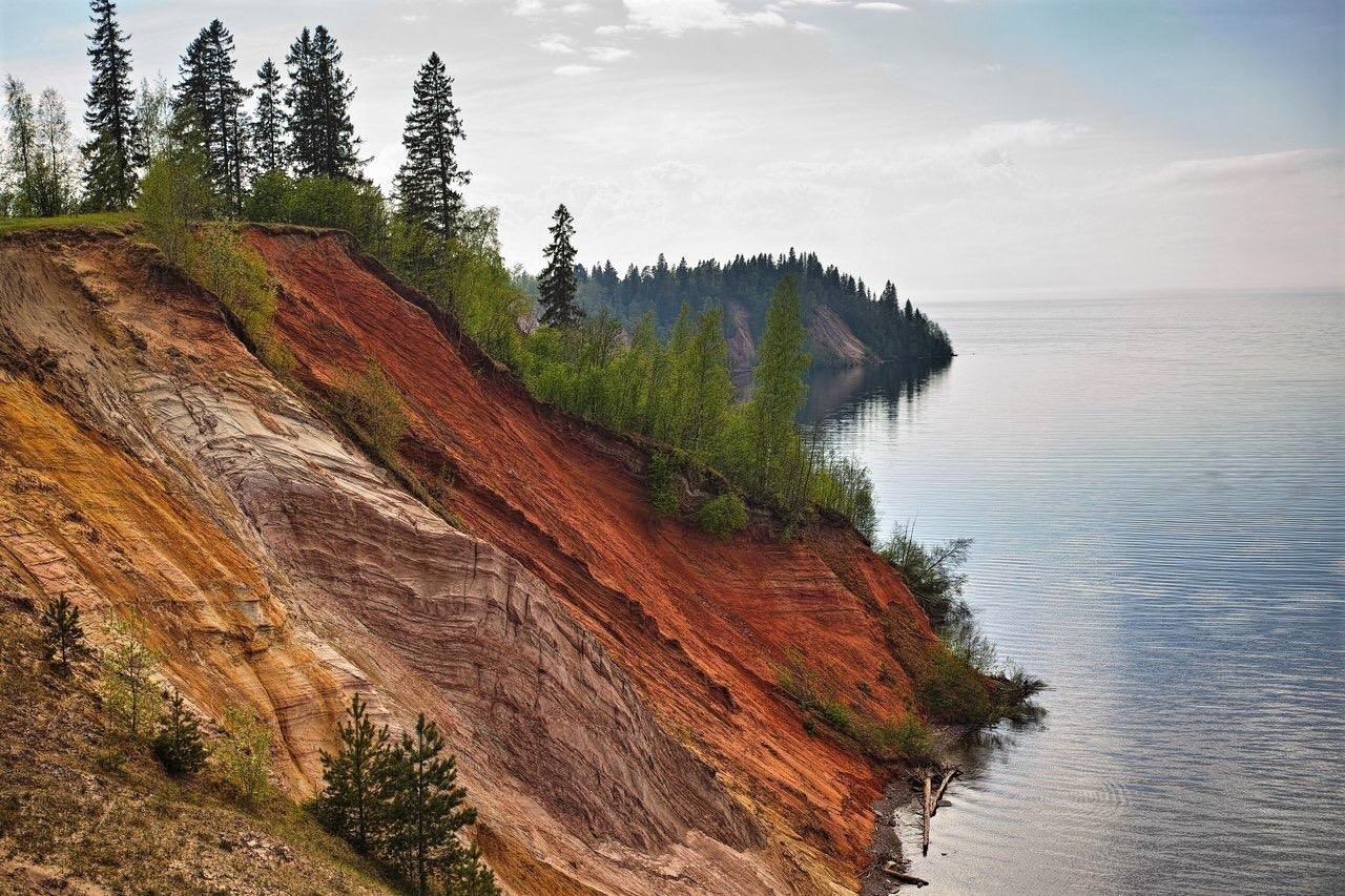 Еще одно из чудес Вологодской земли, которое нам предстоит увидеть - Андом-гора, Андомский геологический разрез, находится в охраняемом природном комплексе Онежский. Сама гора представляет собой необычно высокий для этих мест утес, 85 метров над уровнем моря, с высоты которого открываются изумительные панорамы Онежского озера. Но ценность горы не только и не столько в этих видах. Здесь на поверхность выходят девонские отложения, возраст которых насчитывает около 400 миллионов лет! Среди них можно увидеть песчаники и пески самых разных цветов: красные, зеленые, фиолетовые...