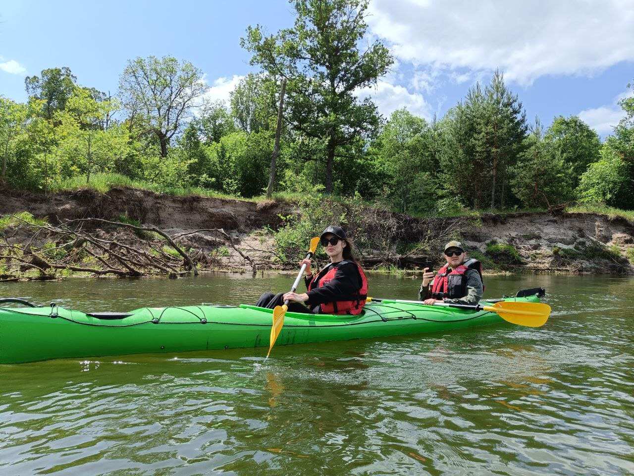 Перед выходом на реку, мы вкусно позавтракаем и прослушаем инструктаж по каякингу. Будем идти на 2-х местных каяках — это очень удобно, когда один гребец устаёт, второй может его подменить и наоборот. А ещё сплав на каяках позволяет лучше чувствовать реку.