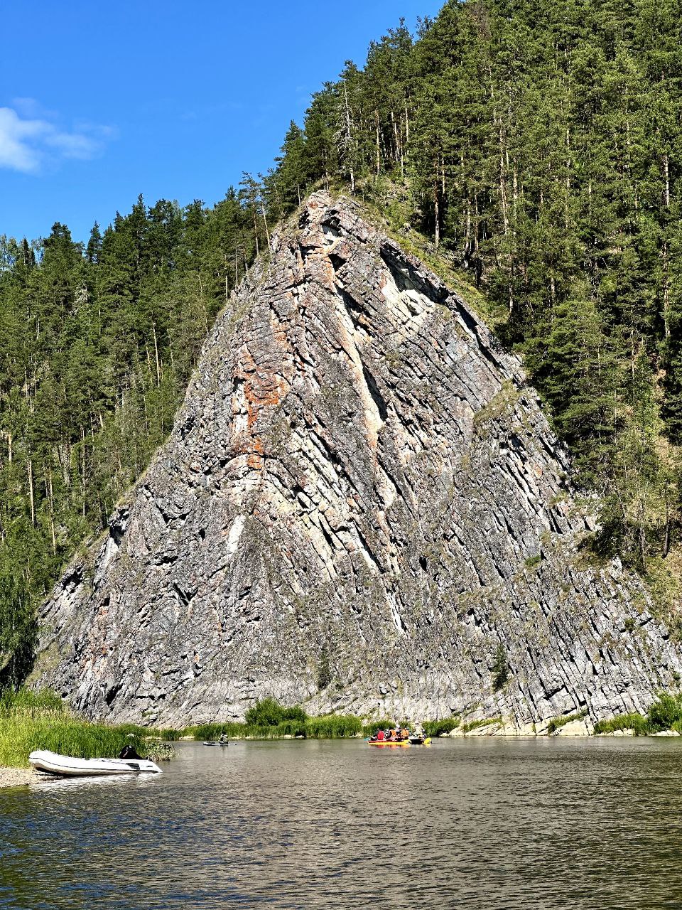 Сегодня нас ждет насыщенный день. Мы преодолеем больше 20 километров по воде, поднимемся на смотровую площадку камня Омутной, посетим пещеру Туристов в камне Дыроватый, полюбуемся скальной громадой камня Олений. На стоянку встанем у камня Писаный, который вытянулся вдоль Чусовой почти на 200 метров. На массиве камня в Xviii веке выбиты крест и надпись. Надпись гласит, что на противоположном берегу реки 8 сентября 1724 года родился Никита Акинфиевич Демидов. На левом берегу, напротив камня, установлен Демидовский крест, высеченный из цельного камня. Крест был установлен в 1779 году, на нём выбита аналогичная надпись, что и на скале.