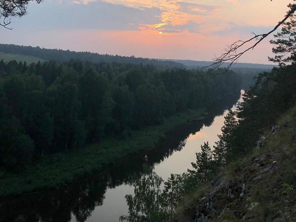 Все камни-бойцы по-своему уникальны: один камень зарос деревьями, другой пустил на себя только несколько чахлых ёлочек. Один врезается в реку как нос корабля, другой тянется вдоль неё почти на километр. Уже скоро мы познакомимся с Вами с одними из самых красочных камней Чусовой. Но история этих мест завораживает не меньше. В частности, камень Сибирский, который мы прошли ранее, назван так из-за речки Большой Сибирки, которая в свою очередь была границей между Россией и Сибирским ханством Кучума. Был даже установлен пограничный камень, но стараниями людей до наших дней он не дожил. Так же когда-то здесь была деревня Сибирка, но никаких признаков её существования не осталось. Пройдя урочище Волегово и камень Высокий (их на Чусовой очень много), к вечеру мы достигнем села Сулём. Свежий хлеб, мороженое и прочую провизию можно будет обновить в его магазине. Уходим за село и встаём на ночёвку. За день проходим порядка 30 км.