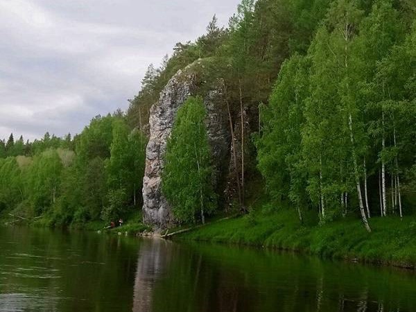 Сегодня очень насыщенный день! Через полчаса после выхода на воду достигнем села Харёнки с губернаторской дачей и памятником Акинфию Демидову на противоположном берегу. После автомобильного моста проходим камень Дождевой, где было обнаружено захоронение шаман с его помощницей. За поворотом выходим на прямой отрезок, который приведёт нас к изюминке всего маршрута камню Омутному. Название он заслужил из-за глубокого (20-30 метров) омута под своим основанием, а высота камня достигает 70 метров! На самой верхушке камня есть немного благоустроенная площадка. Особо ленивые ценители прекрасного могут добраться до камня на авто. От скального массива у макушки отходит небольшой кусок-столб особо жаждущие и уверенные в себе товарищи могут забраться на него для памятного фото. Подъём и спуск на Омутной осуществляется по очень крутой горке торопиться ни в коему случае нельзя! Для подъёма нужно надеть удобную обувь со шнурками. Для большего удобства по склону натянуты верёвки. Омутной один из тех камней, который взрывали больно уж опасен он был для барок с рудой.