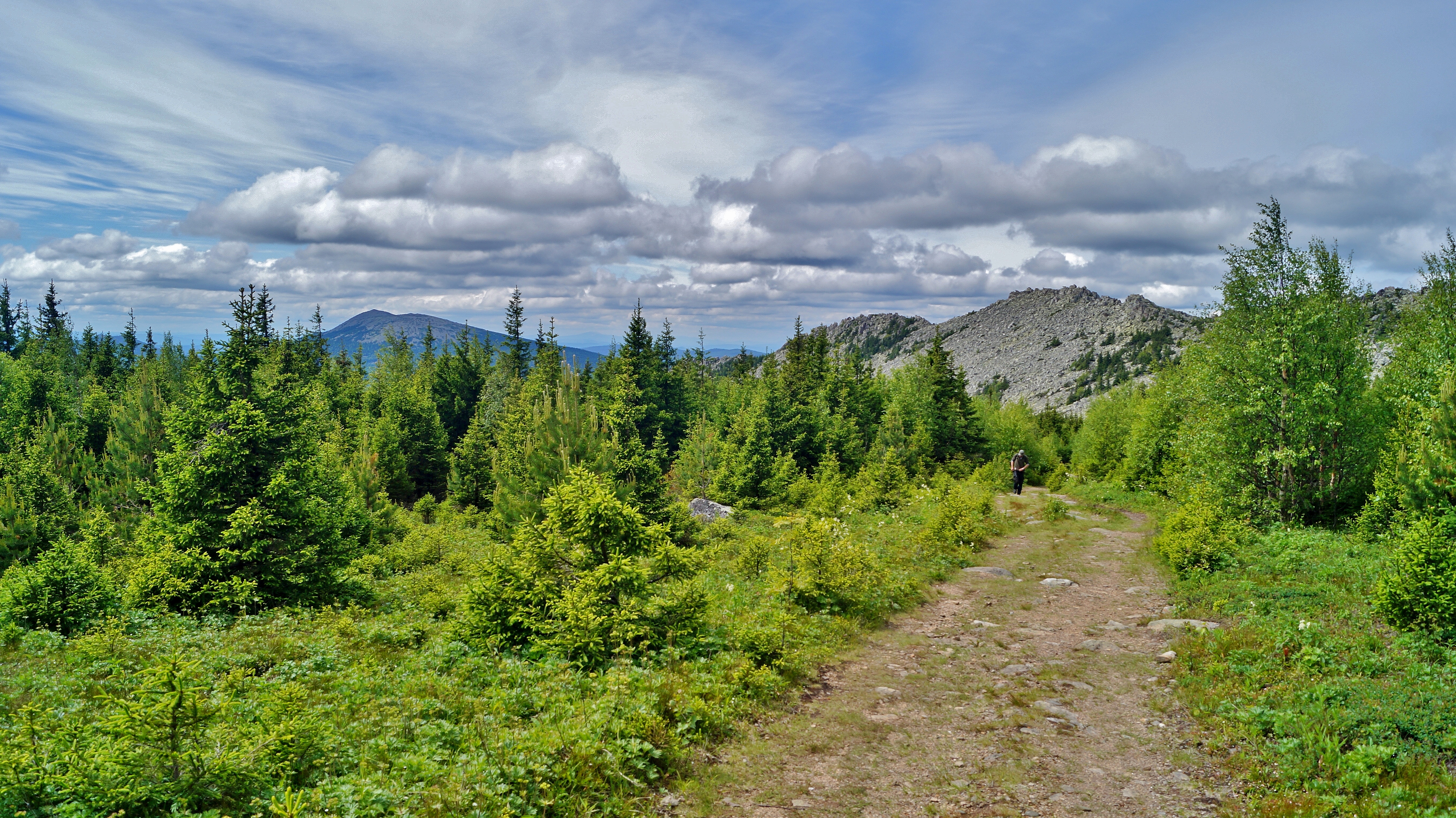 Выход на тропу. По тропе через урочище Три Брата, любуясь скальными останцами, спускаемся к развилке Стрелка и от нее поворачиваем на Метеостанцию. Попыхтев 4 км, мы попадаем на высокогорное плато Дальнего Таганая.