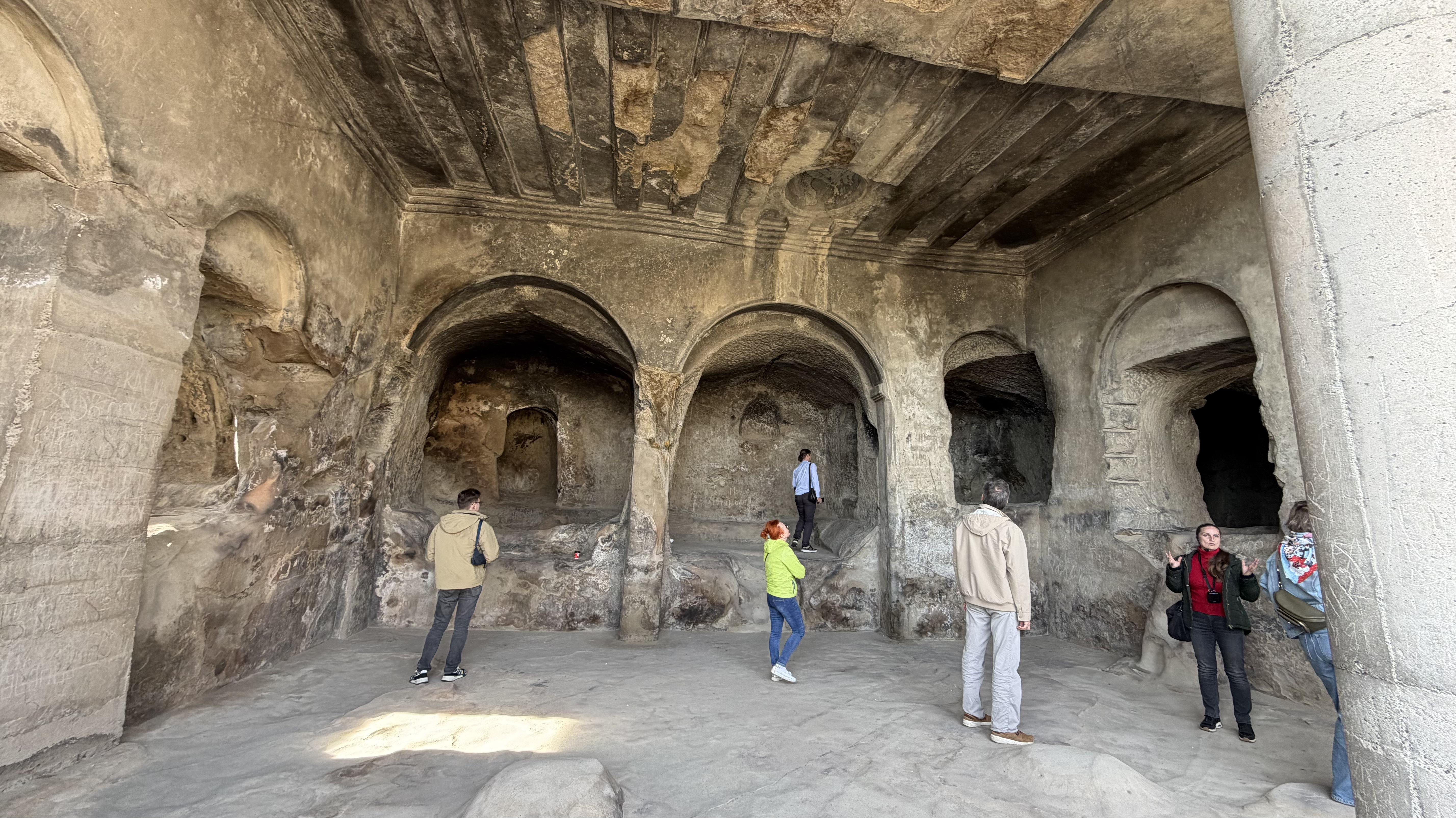 В недрах горы построено одно из крупнейших в мире вино хранилищ. Длина всех его пятнадцати штреков составляет 7,5 км. Глубоко в мраморной тверди скалы скрыт основной зал винотеки. После жаркого кахетинского солнца, кажется, что попадаешь в холодильник. Температура в штреках зимой и летом +14, то есть именно такая, при которой должны выдерживаться марочные красные вина.