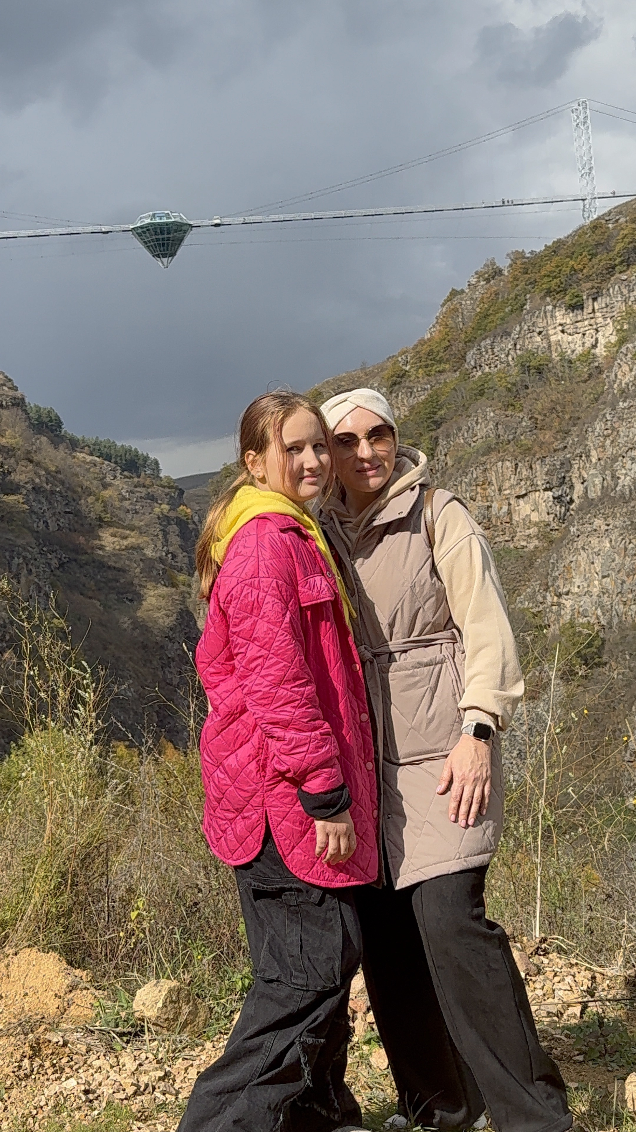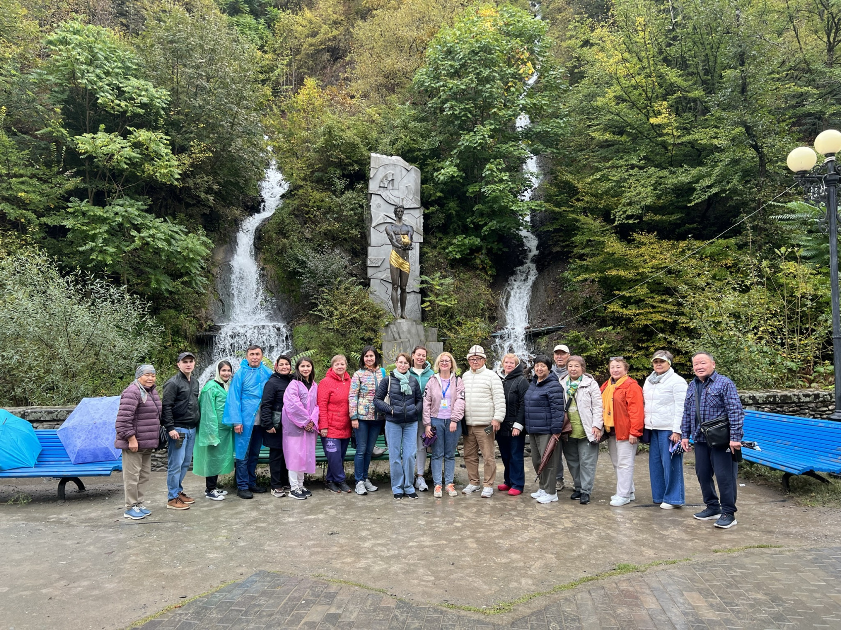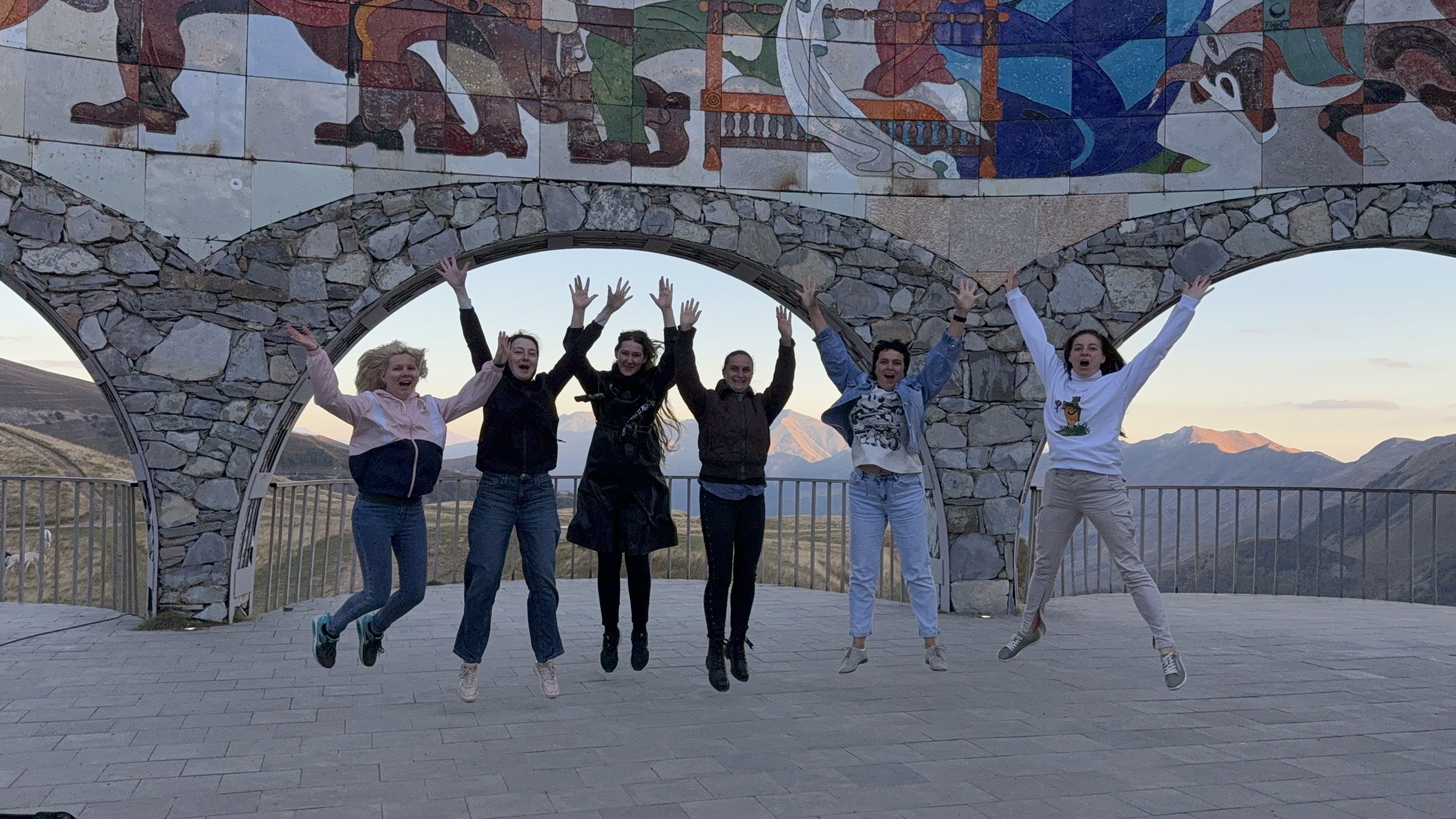 Мы обязательно остановимся на панорамной смотровой площадке советского периода Дружба Народов, откуда открывается живописный вид на глубокое ущелье Кавказского хребта, здесь неизменно получаются восхитительные кадры и можно над ущельем полетать на параплане.