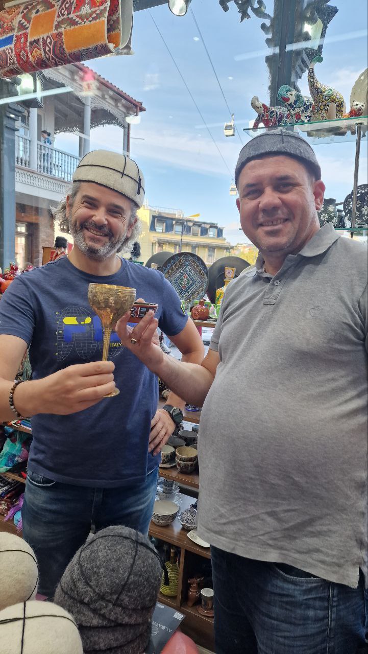 Вас также ждут выставки распродажи изделий народного промысла и выставки художников. В духанах и на улицах города готовятся самые вкусные блюда знаменитой грузинской кухни. Традиционное грузинское застолье это не просто еда, а такой элемент общей культуры великого народа, как и грузинское семиголосое пение, грузинское искусство и архитектура. Во время грузинского застолья стол ломится от угощений, волшебная сила вина и поток мудрых и веселых грузинских тостов превращают трапезу в прекрасную песню, открывающую сердца людей. Обязательно будет 30минутная остановка, для дегустации шашлыка вприкуску с бокалом вина, оплата на месте. Гуляния длятся до поздней ночи, после того, как гид вас оставит, у вас будет много времени погулять самим, и вдоволь насладиться нашим колоритом и настоящим весельем всего города! Так же гид сообщит, программу вечерних мероприятий, и даст всю информацию, как и куда попасть. Этот день точно, никогда не сотрется с вашей памяти, и появится желание вернуться, и не один раз .