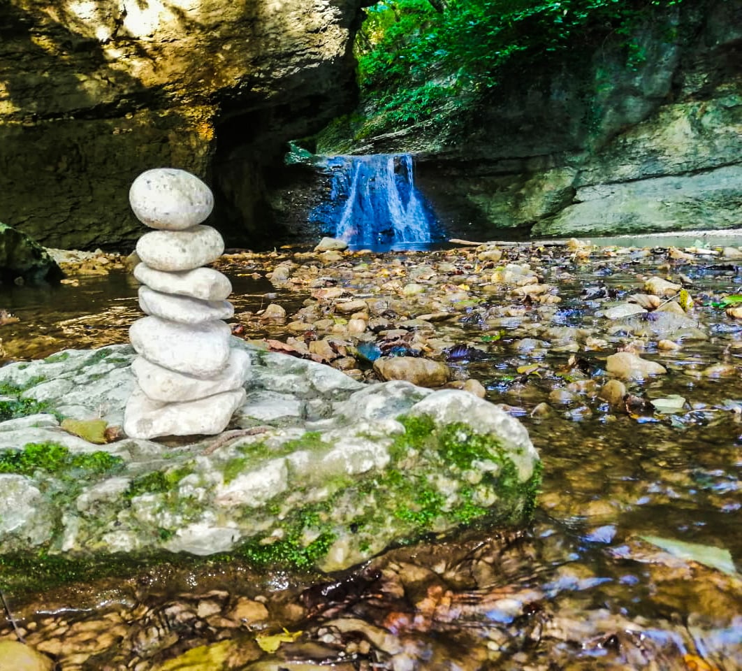 • 10.00 - Экскурсия к реликтовому ущелью Руфабго с его водопадами; От первого водопада, называемого Шум до второго Каскадный около 750 м. Самым красивым признан третий водопад Сердце Руфабго. Узкий поток воды, обтекая громадную каменную глыбу, обрывается в живописное глубокое ущелье. Скалы ущелья, сложенные горизонтально залегающими плитами известняка, наполняют пространство загадочными звуками эхо. Сердцем Великана зовут люди этот камень и рассказывают древнюю легенду