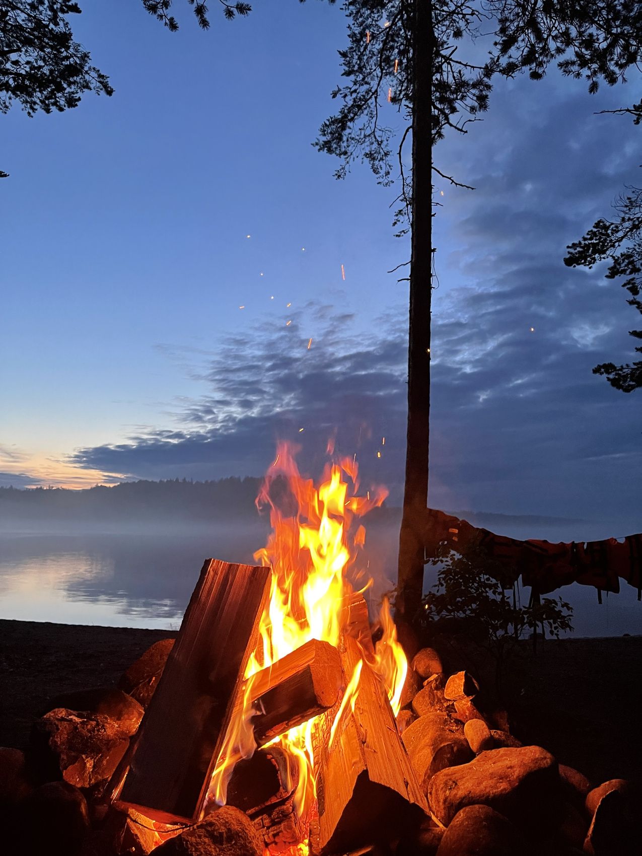 После ужина Вы сможете попариться в походной бане и насладиться купанием в бодрящей ладожской озерной воде! Температура в бане может достигать 100С в зависимости от предпочтений гостей. Вечер сопровождается приятными разговорами у костра и жаркой зефирок!