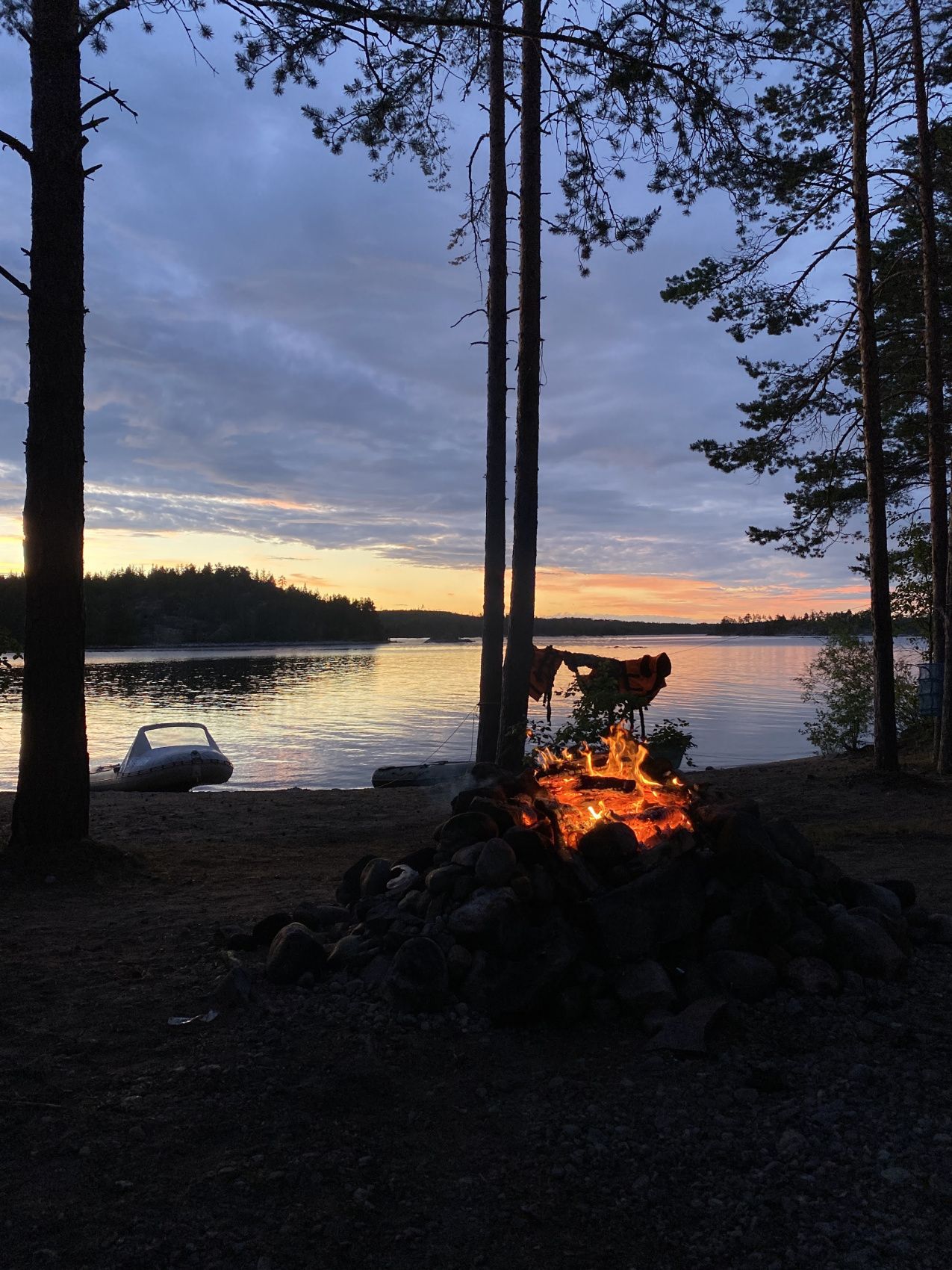 После ужина душевные посиделки у костра и закатная прогулка на моторной лодке: Вы увидите самый незабываемый закат на фоне Ладожского озера!