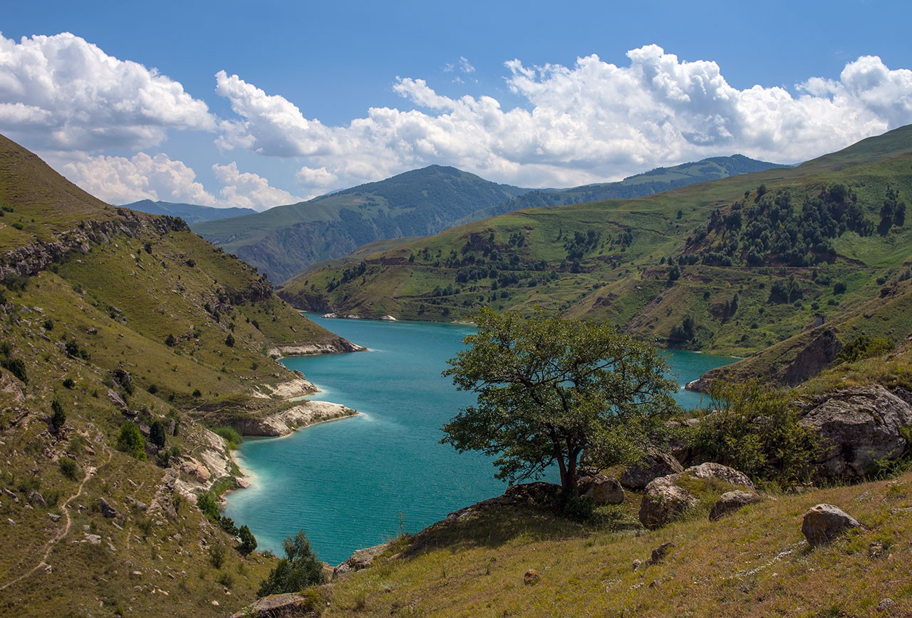 Озеро Гижгит. По пути сделаем остановку у искусственного озера с невероятным бирюзовым цветом воды, окруженного впечатляющими горными панорамами .