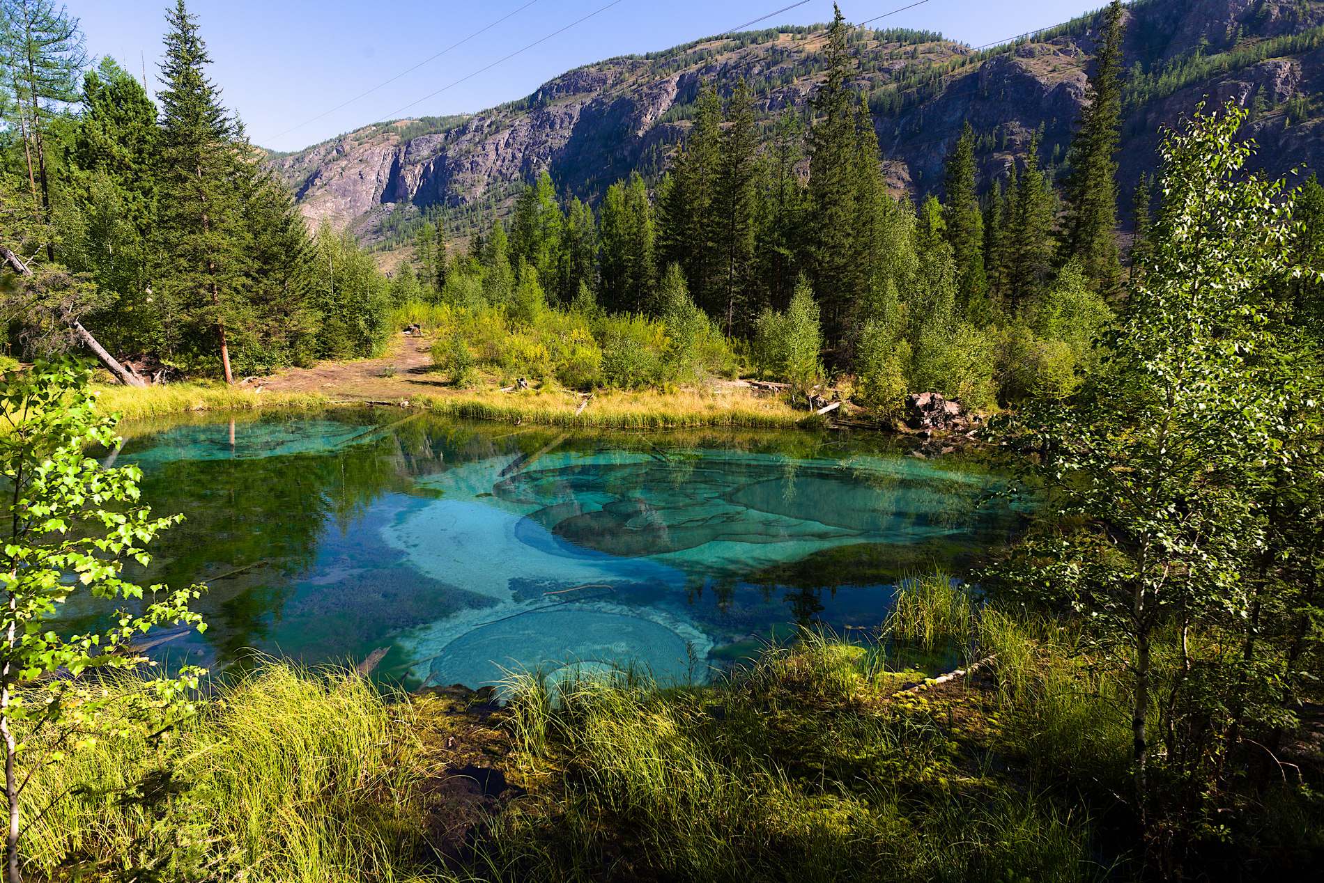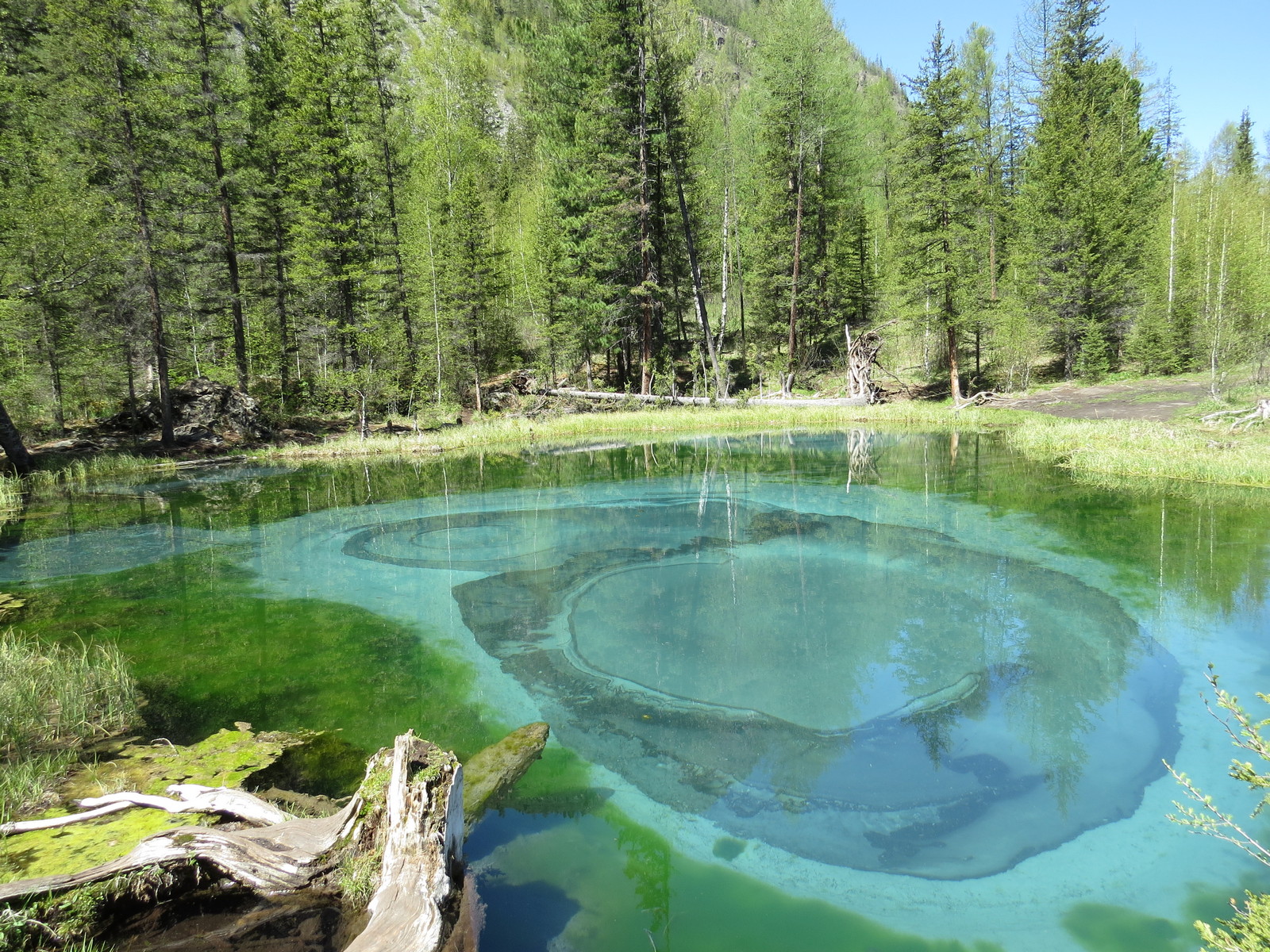 Увидим и магическое Гейзерное озеро, которое рисует картины на дне.