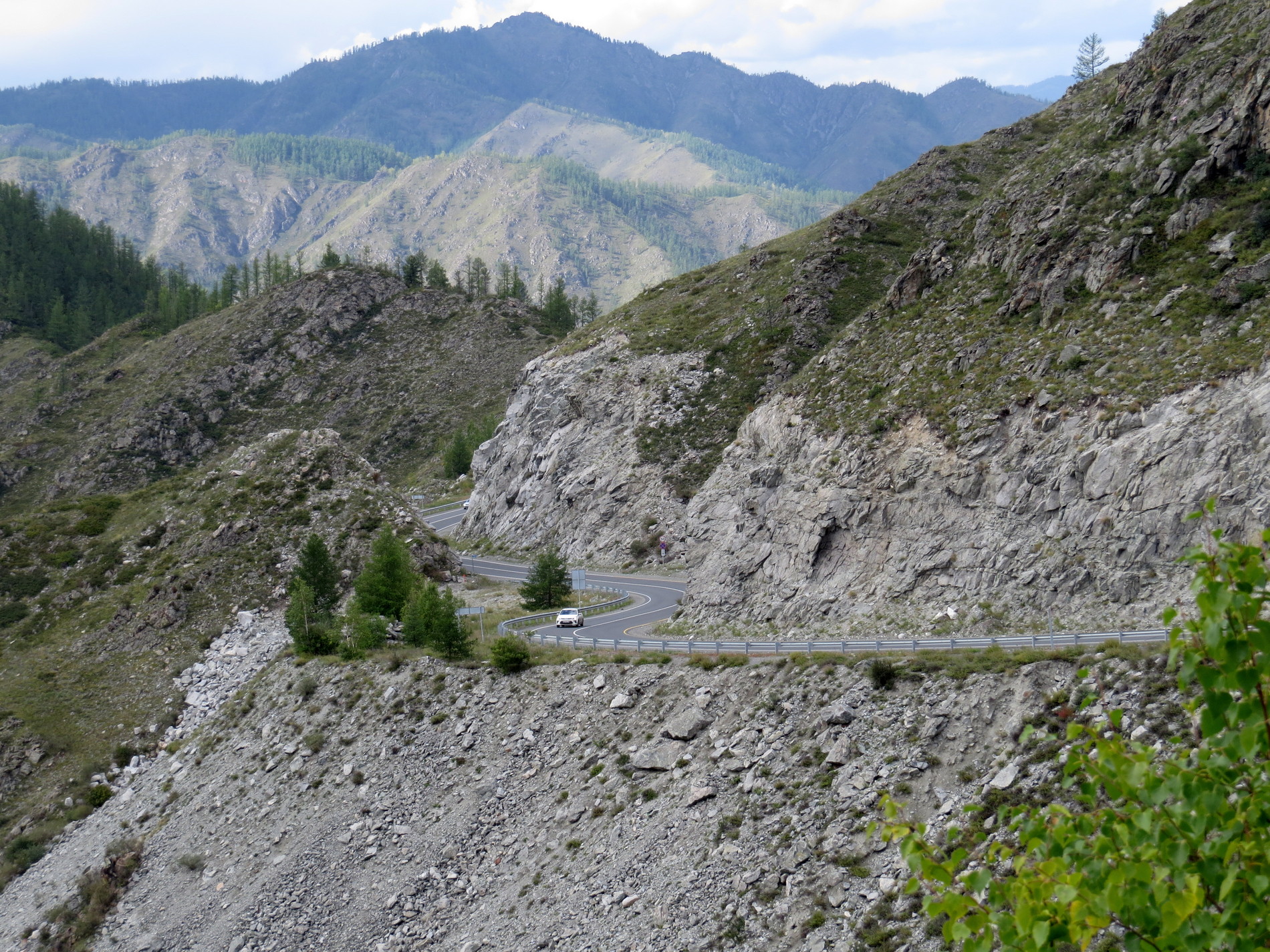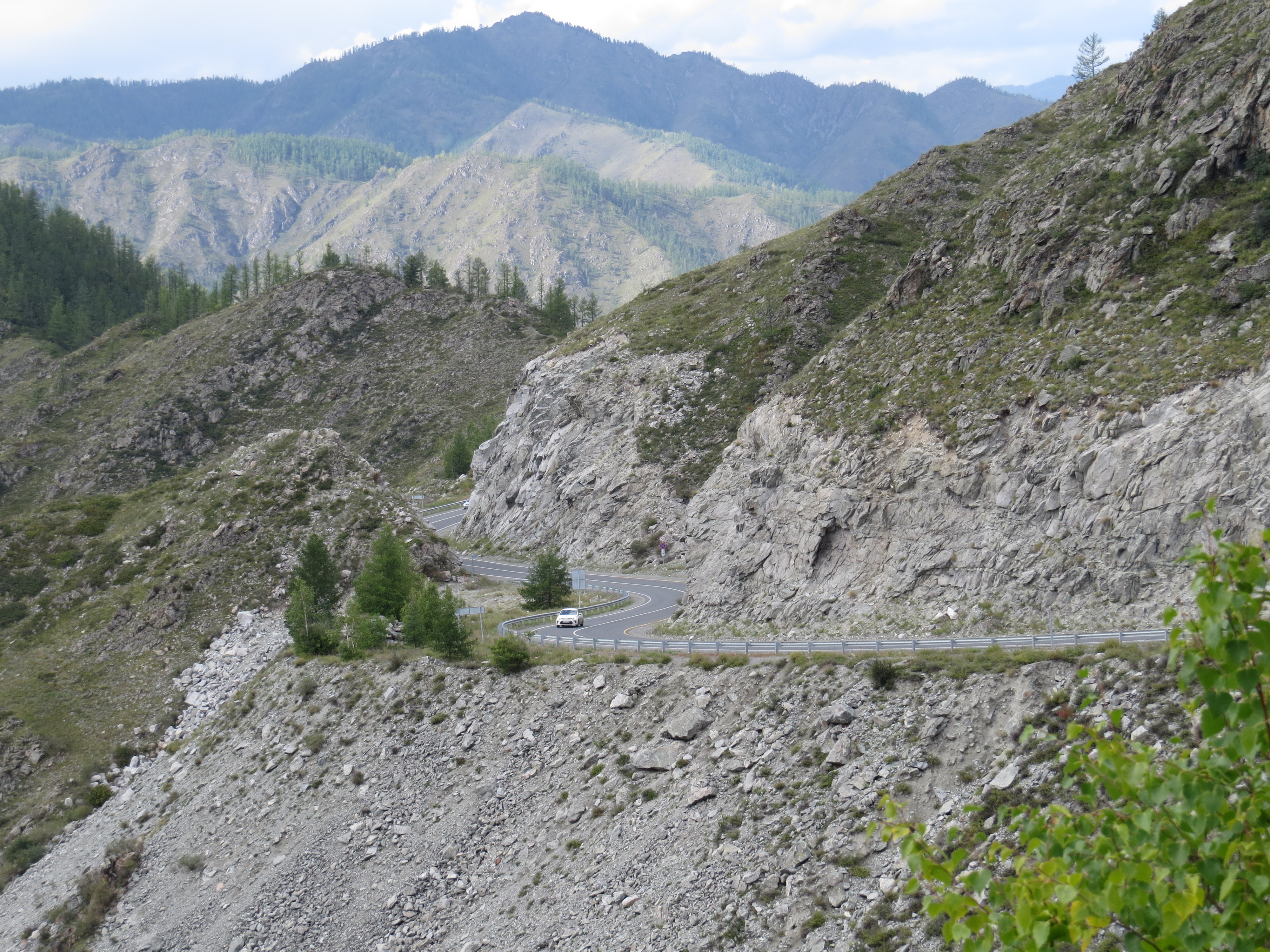 Вскоре мы начнем покорение первого горного перевала — Семинского, высотой 1717 метров. После него мы ненадолго свернем в сторону и проедем по ультрасовременной дороге до устья реки Урсул. Эта дорога была построена чуть больше 10 лет назад с применением новейших технологий. Здесь нас ждет первая пешая прогулка — мы спустимся к месту впадения Урсула в Катунь и полюбуемся мощью двух рек, сливающихся в одном русле.