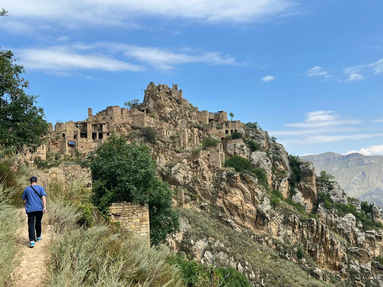 После Музея мы выдвигаемся в Гамсутль . Гамсутль - это заброшенное село в Дагестане , которое находится в горах на высоте около 1500м над уровнем моря. Это место привлекает туристов своей уникальной архитектурой и живописными видами. Село Гамсутль было основано в средние века и являлось одним из центров жизни коренных народов Дагестана. Оно достигло своего расцвета в 20 веке , но с течением времени жители начали покидать его , и к началу 2000-х годов село стало малонаселенным. в 2015 году село стало полностью заброшенным. На Гамсутль можно подняться на лошадях.Спускаемся с Гамсутля и идем на Обед