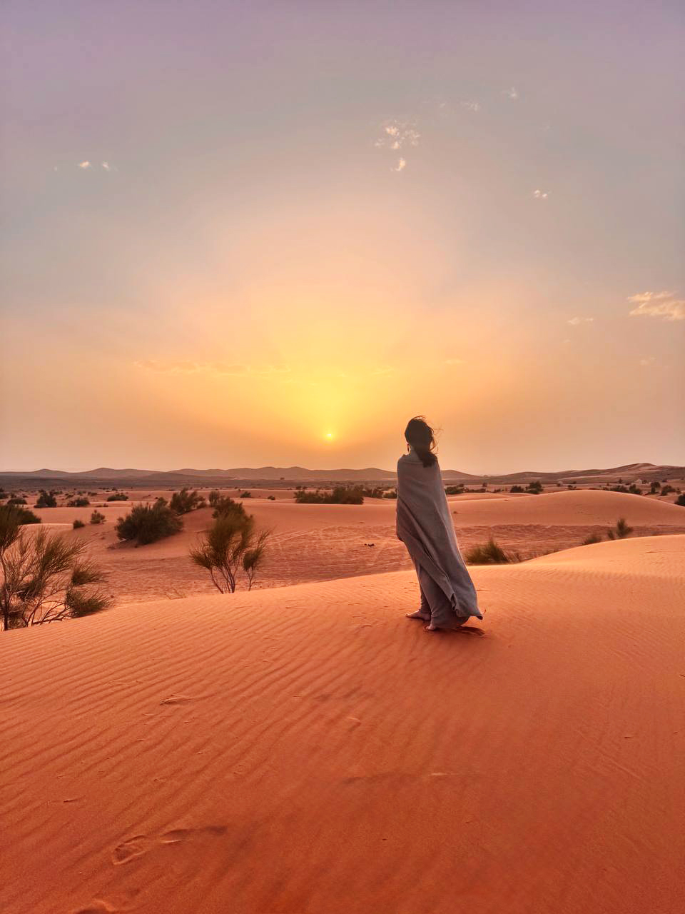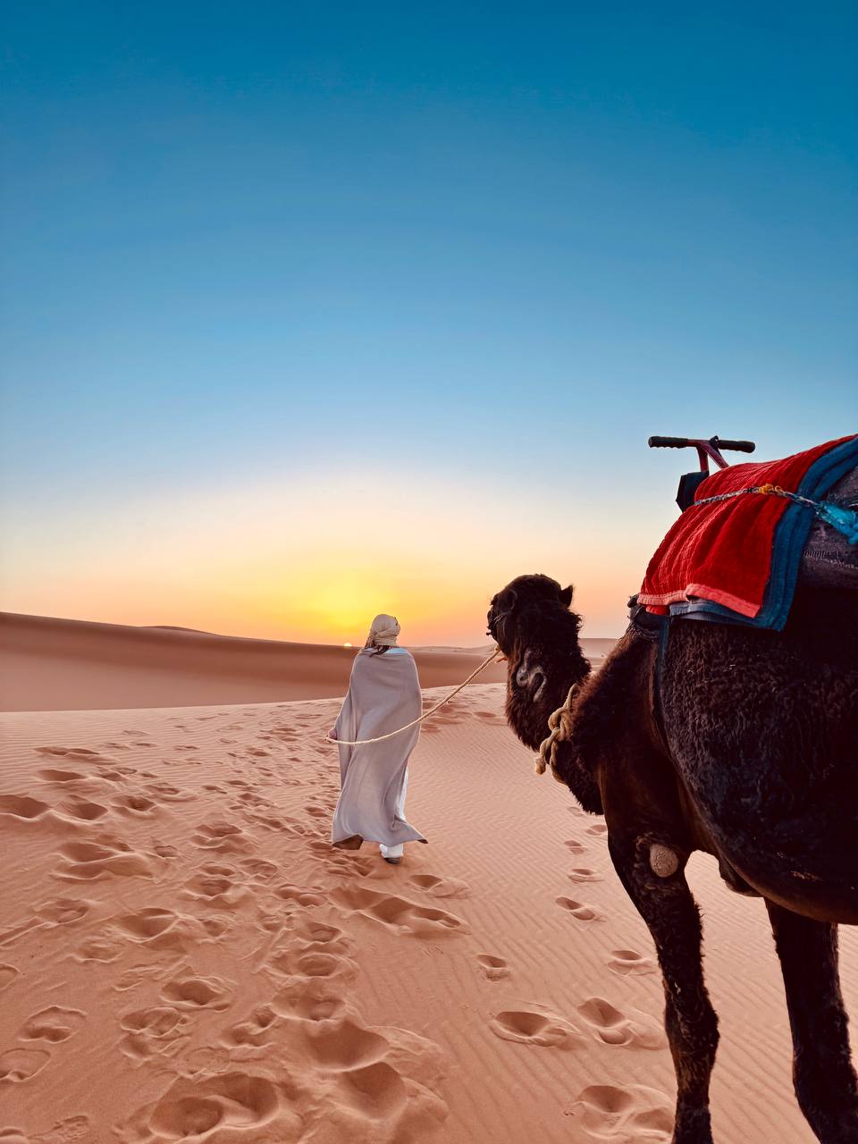 Рассвет в пустыне - один из самых сильных моментов всего маршрута. Никаких слов - только свет, песок и тишина. Ну и фотосессии с верблюдами)