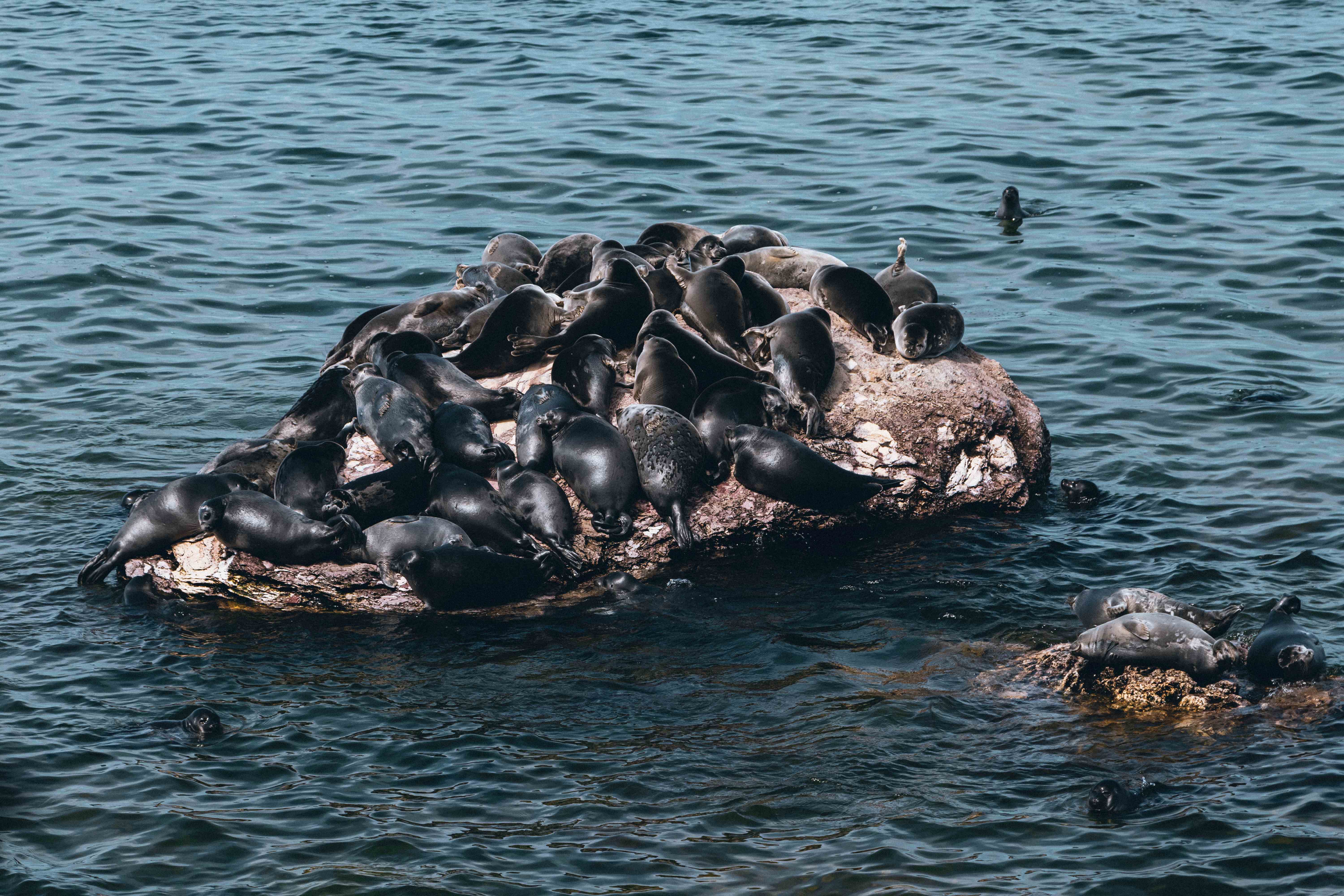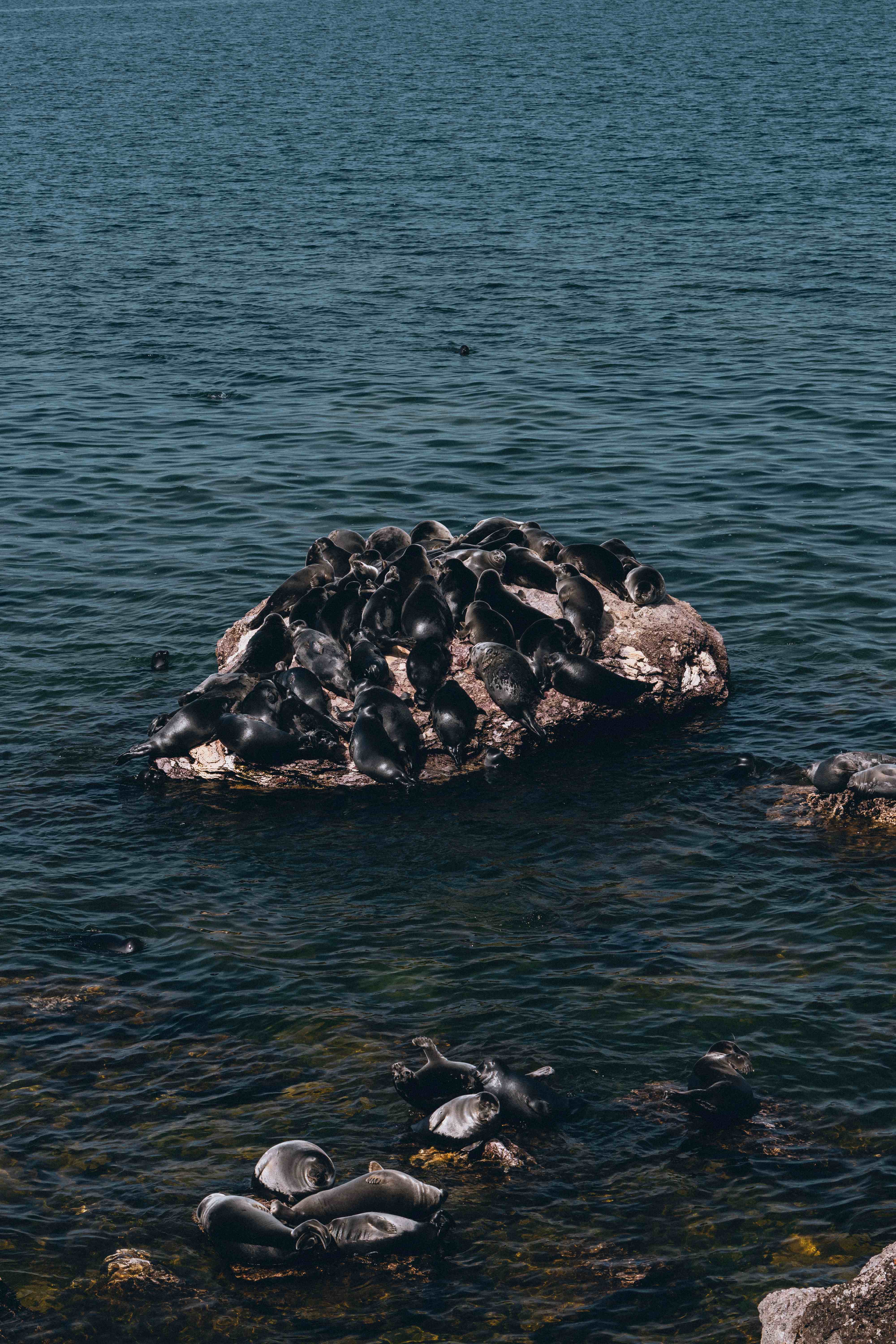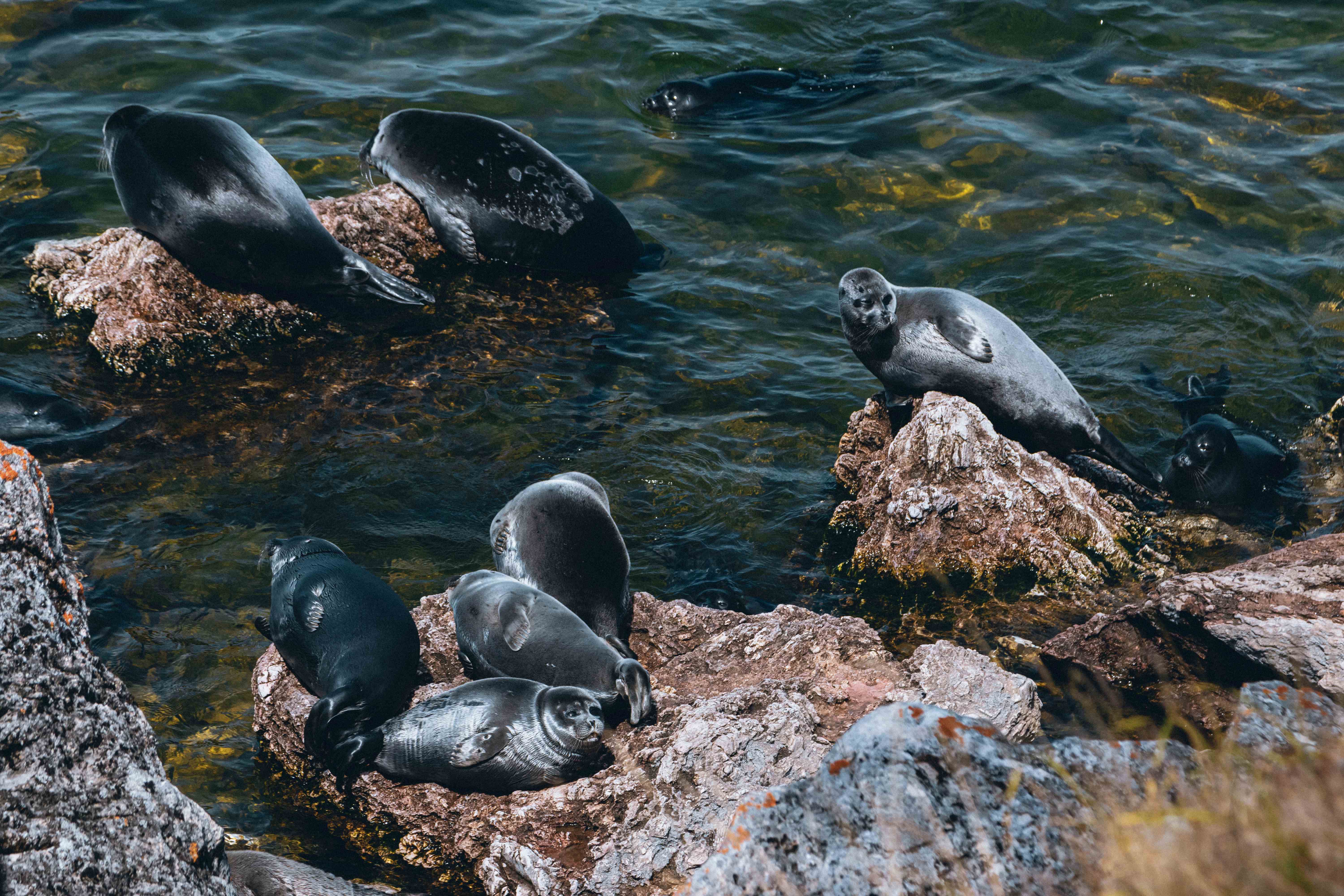 Мы причаливаем к острову Тонкий. Здесь начинается главная магия дня. Бесшумно, почти на цыпочках, наблюдаем за лежбищем байкальской нерпы. Эти удивительные создания - единственные в мире пресноводные тюлени - лежат на камнях, греются, лениво поглядывают в сторону людей и снова ныряют в бирюзовую воду. Мы смотрим на них в полной тишине, чувствуя себя случайными гостями в их мире. Никаких зоопарков, никаких вольеров - только дикая, честная, настоящая природа.