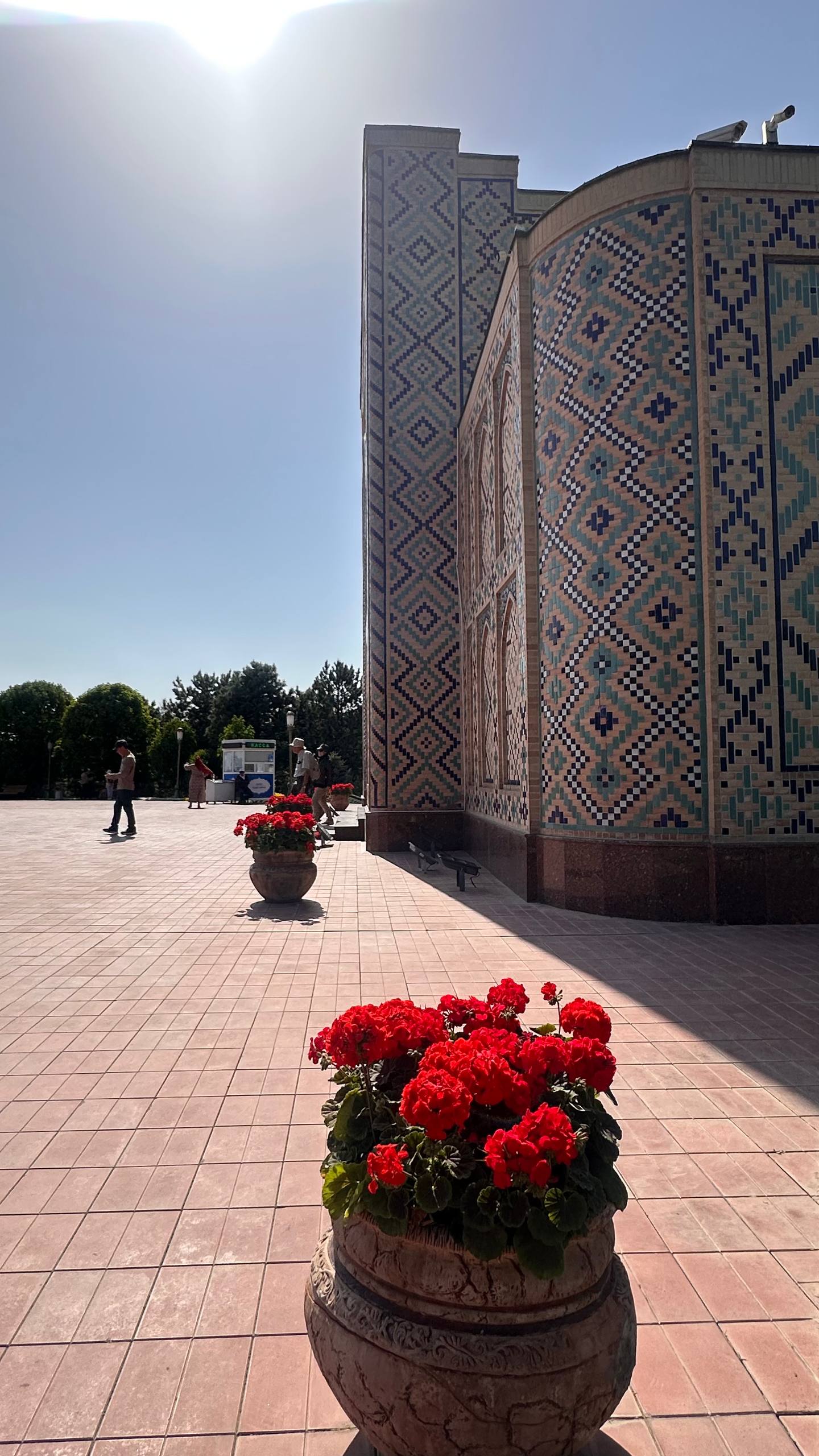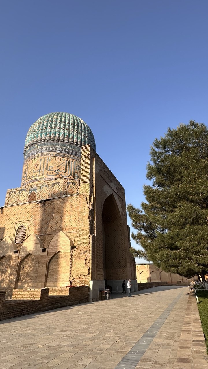 Воздух, пропитанный ароматами специй и истории, наполняет нас неповторимым очарованием Самарканда. Неспешная прогулка переносит нас к мавзолею Гур-Эмир, усыпальнице великого Тамерлана. Его синеватые купола, словно драгоценные камни, сверкают под ярким солнцем.