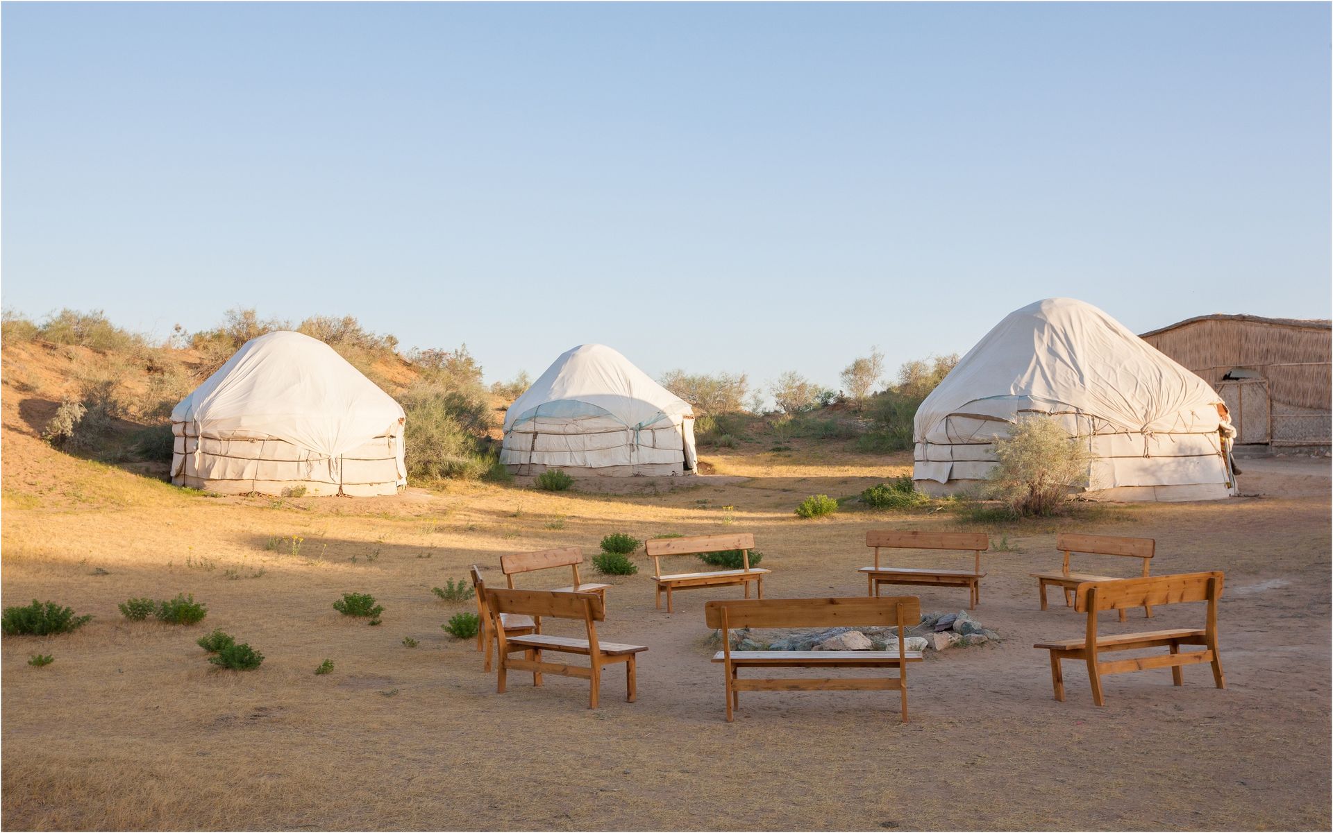 Мы увидим крупное озеро Айдаркуль (длина более 250 км!), созданное искусственно стихийным бедствием, а именно половодьем реки Сырдарья в 1969 году. Место стоянки нашего каравана станет аутентичный юртовый лагерь в нескольких километрах от озера. Как вариант это может быть Юртовый лагерь Кызылкум, или подобный ему.