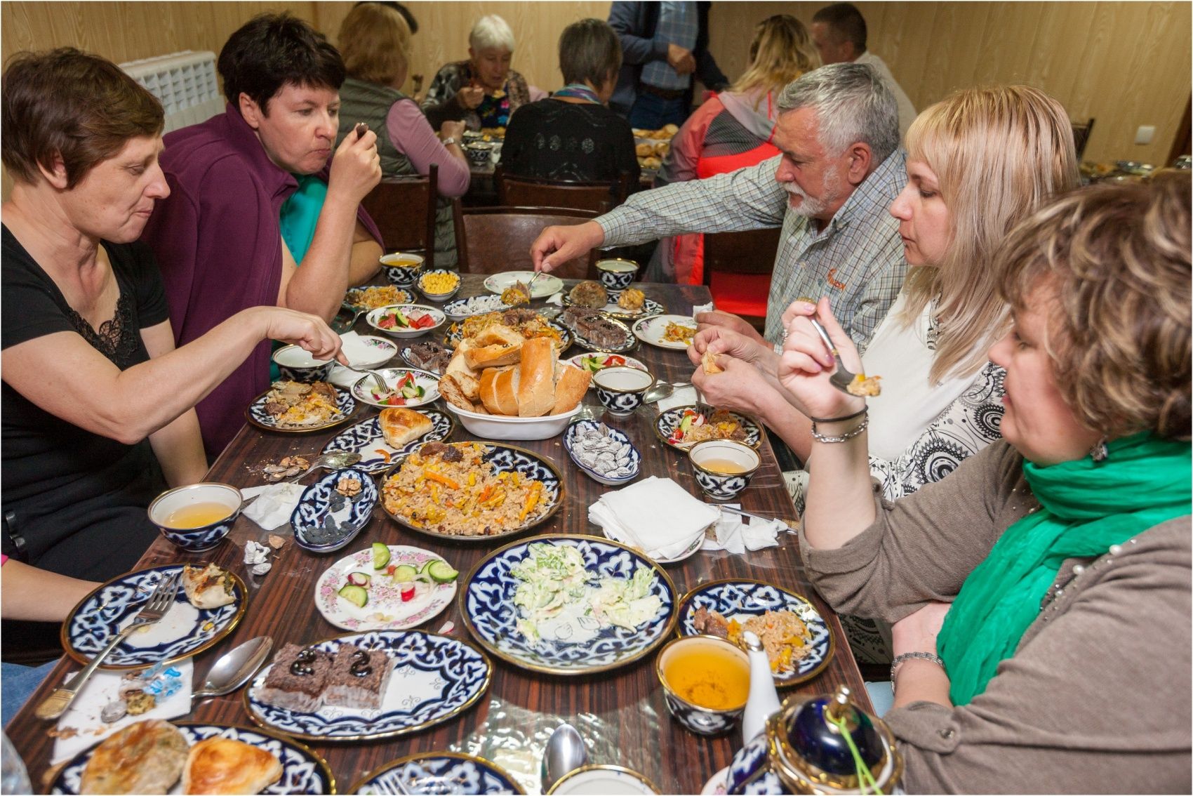 После погружения в древние историю и культуру мы переходим к культуре нынешней, посетив по желанию мастер-класс по приготовлению самаркандского плова и тухум-барака (за доплату) с последующим гостеприимным застольем, без этого тут никак!