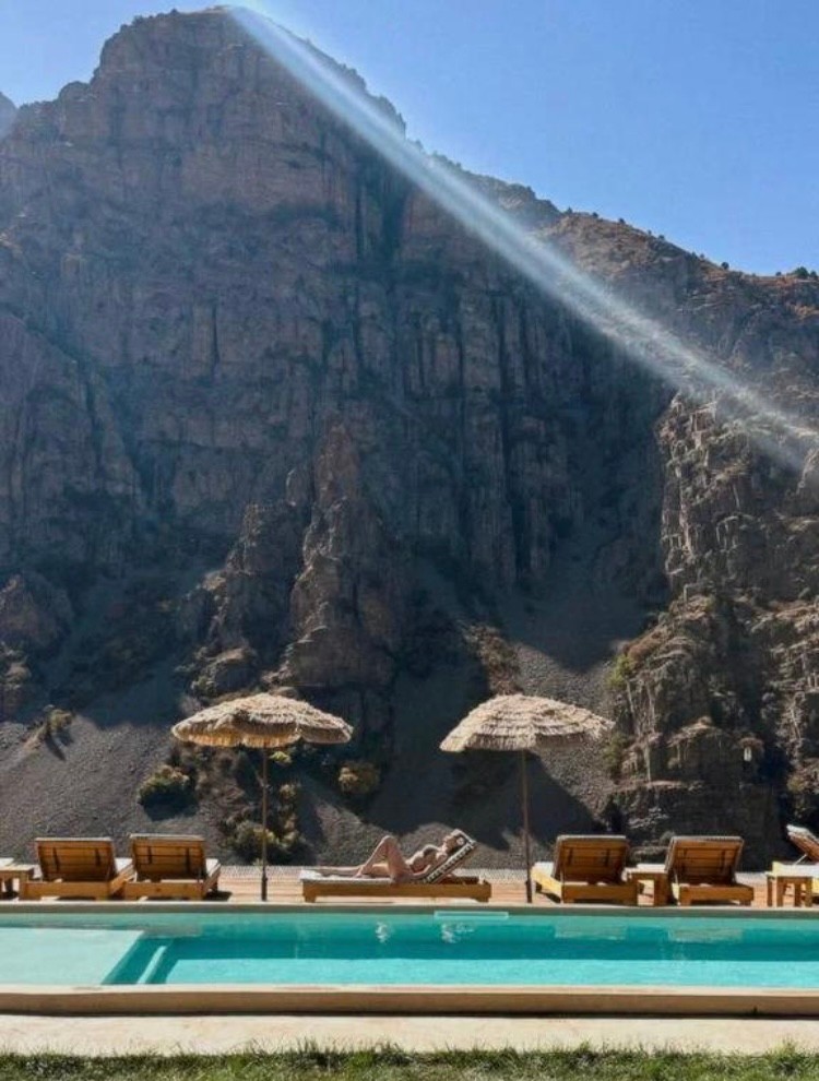К вечеру заселяемся в домики в горах: в нашем распоряжении подогреваемый бассейн, поэтому купальники берём с собой!