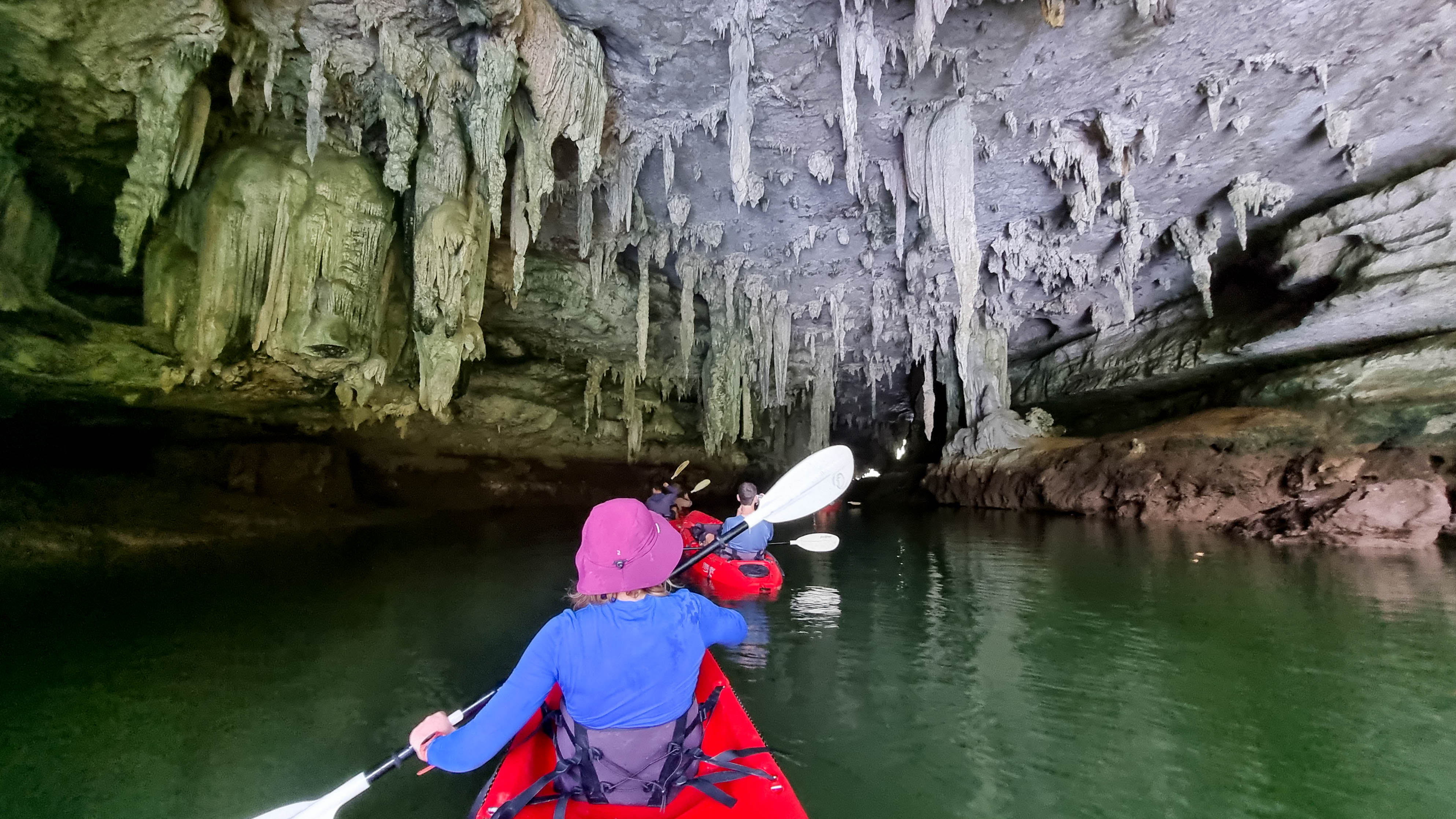 А ещё мы посетим несколько интересных пещер с красивыми подземными озёрами. Одна из них называется Пхи-Хуа-То (пещера большеголового призрака) — самая известная пещера Краби, расположенная в окружении мангровых лесов и украшенная доисторическими рисунками, изображающими людей и морских животных. Путь к ней будет тернист и сложен, для этого мы даже на какое-то время, поменяем своих железных коней на речные каяки.