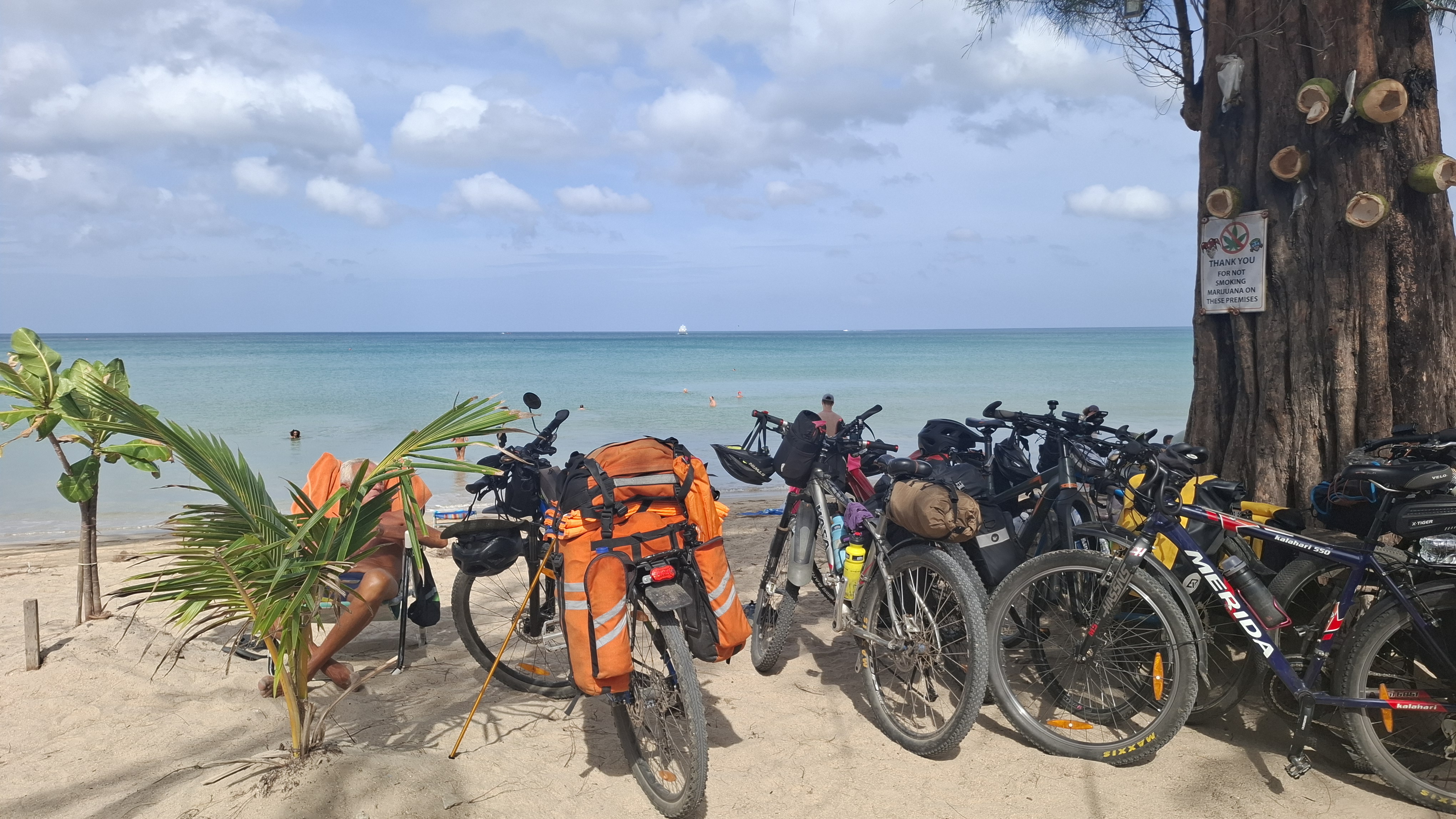 Сегодня держим путь в сторону аэропорта, к курортной деревушке, где начиналось наше велосипедное приключение. По пути посетим ещё несколько новых для нас пляжей: