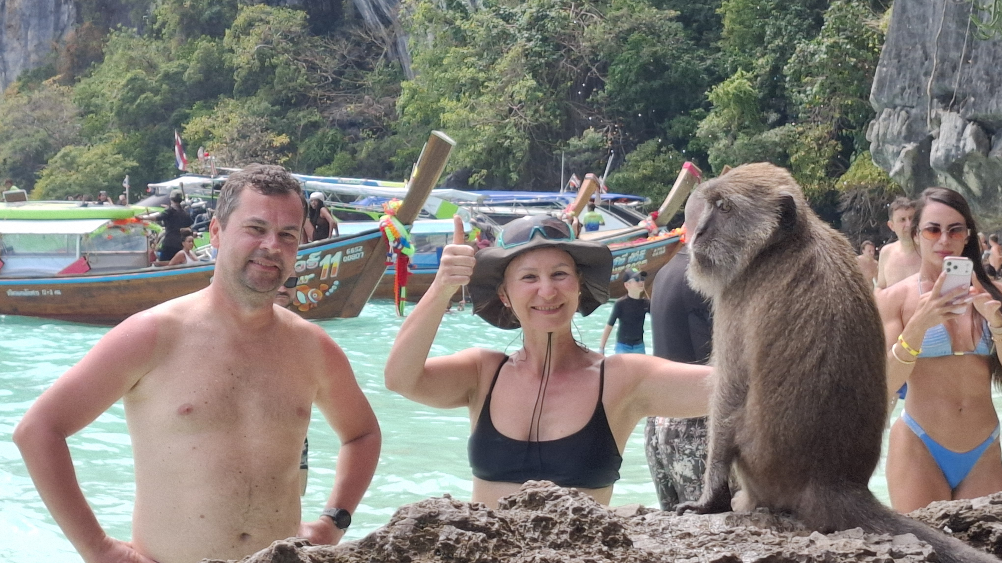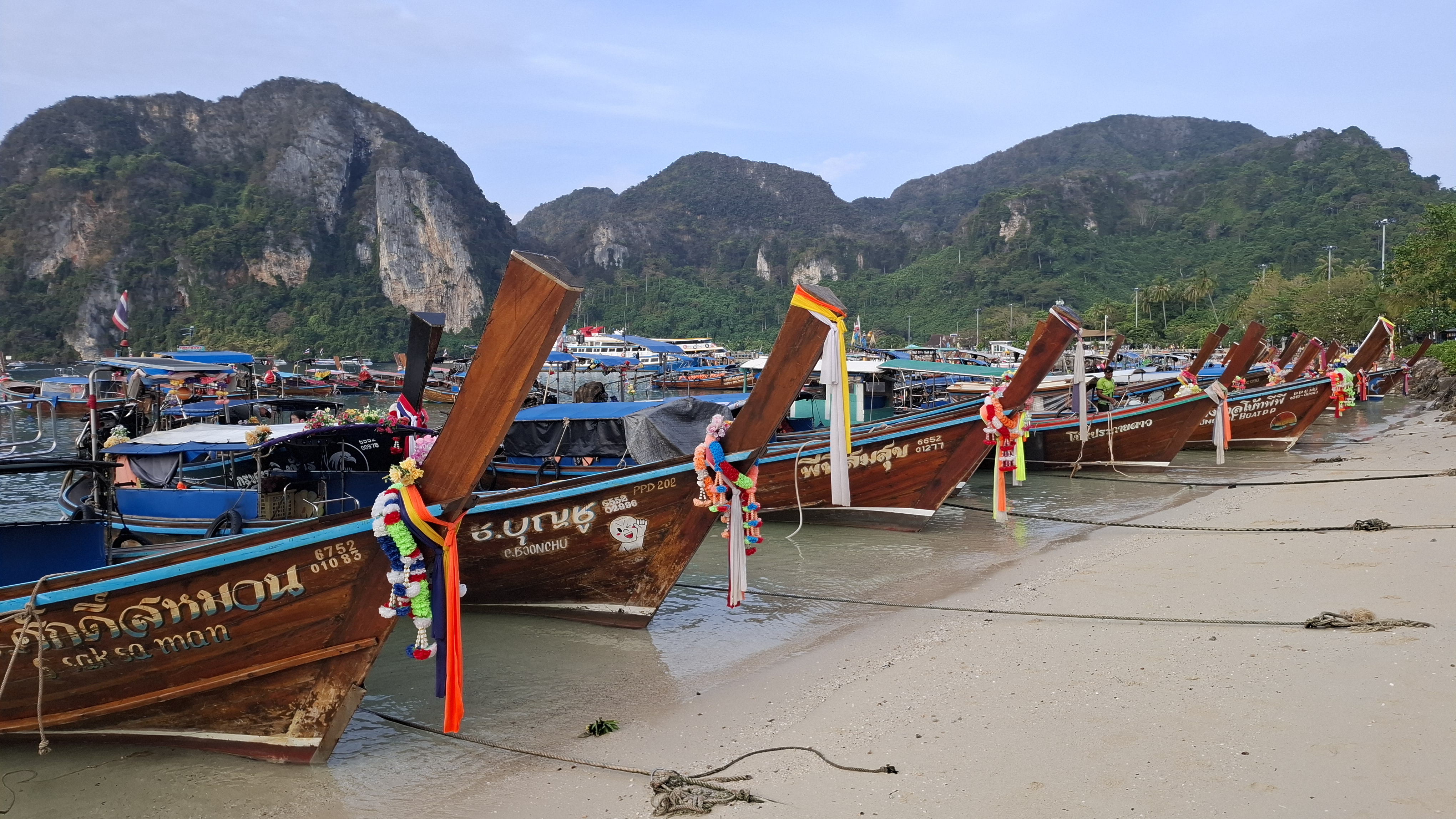 Сегодня мы отдыхаем от велосипедов, купаемся и исследуем окрестные острова. Пхи-Пхи — архипелаг из шести островов, расположенных примерно в 35 километрах от побережья Краби. Четыре из них являются крошечными, а вот Пхи-Пхи-Ле и Пхи-Пхи-Дон имеют достаточно внушительные размеры. Последний является единственным населённым островом архипелага.